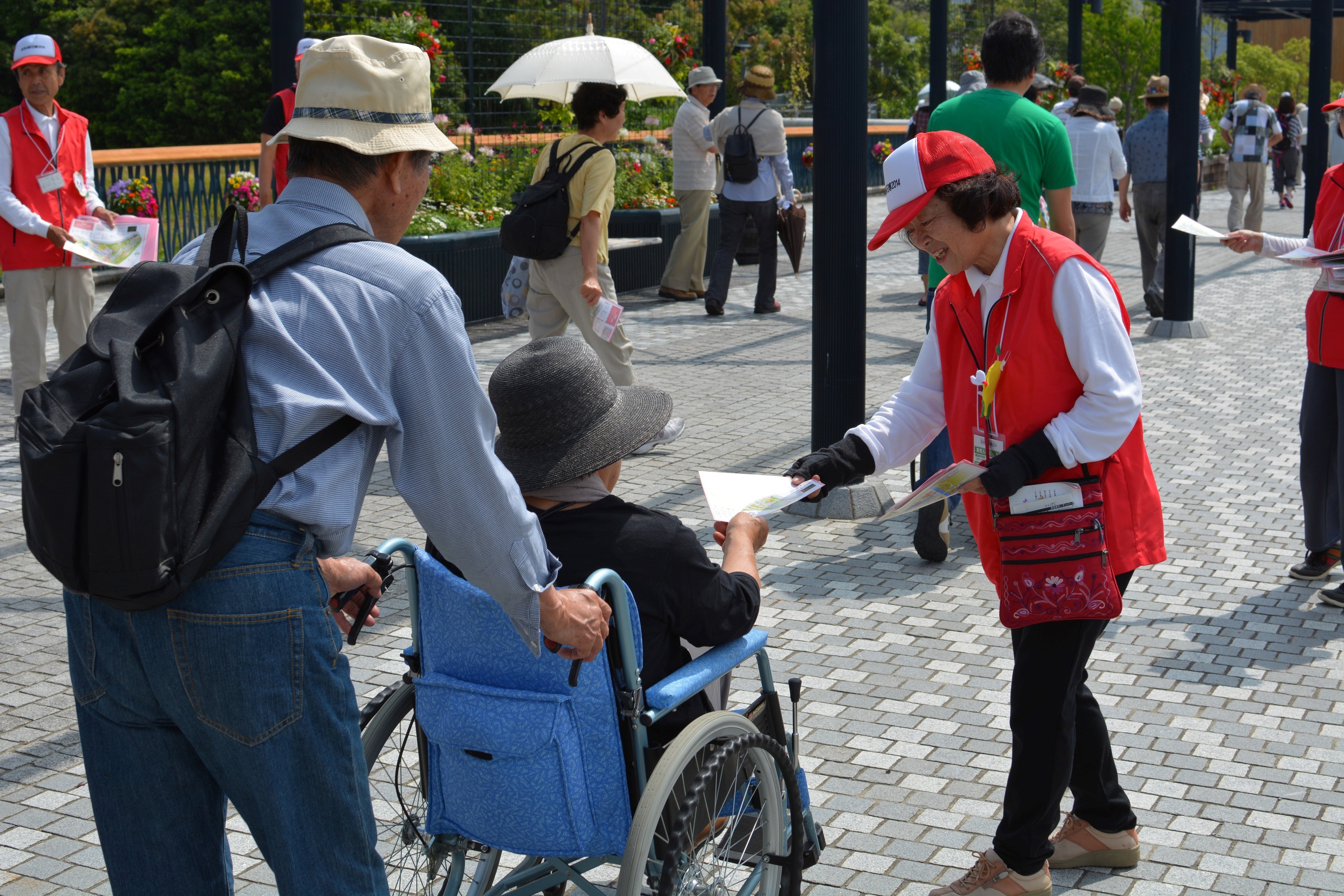 各会場ではご来場者様をお迎えし、園内のおすすめスポットを紹介いただくガイドボランティアと、園芸ボランティアの主に2つの活動があり、性別、年齢の垣根を越えて様々な人と交流することができます。