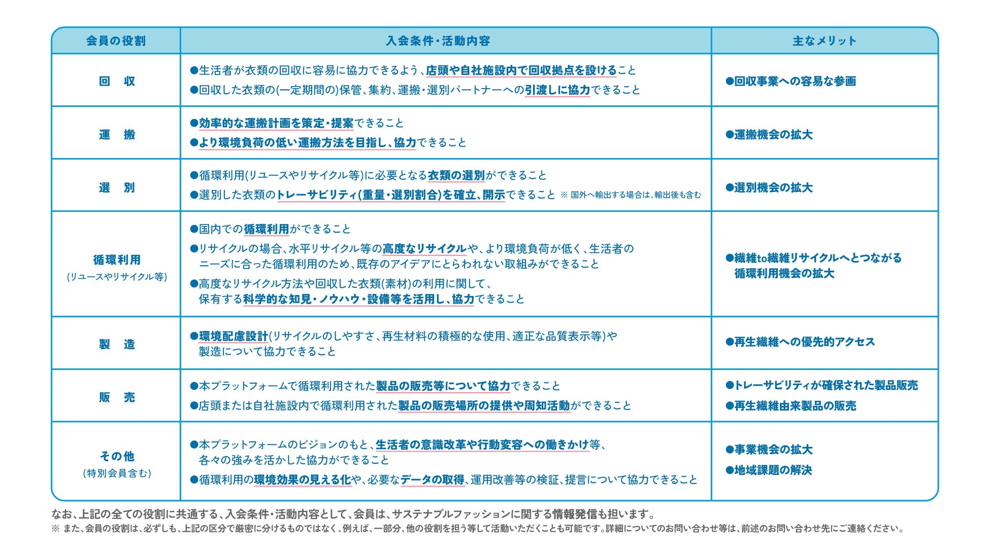 【入会条件と会員ごとの主な活動内容】