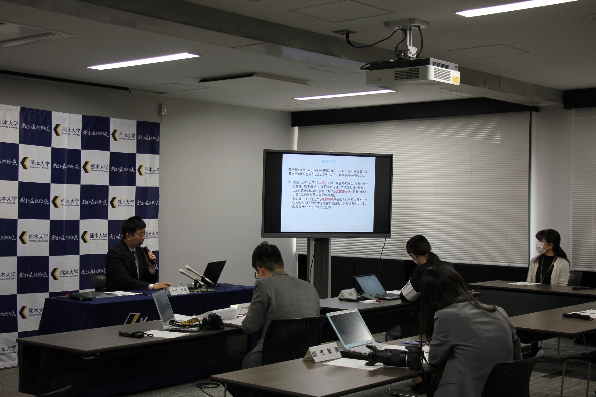 令和8年3月30日(月)、熊本大学工学部1号館2階共用会議室Aにて、熊本大学永青文庫研究センターの今村 直樹 准教授が研究成果について説明する記者発表を実施しました。
