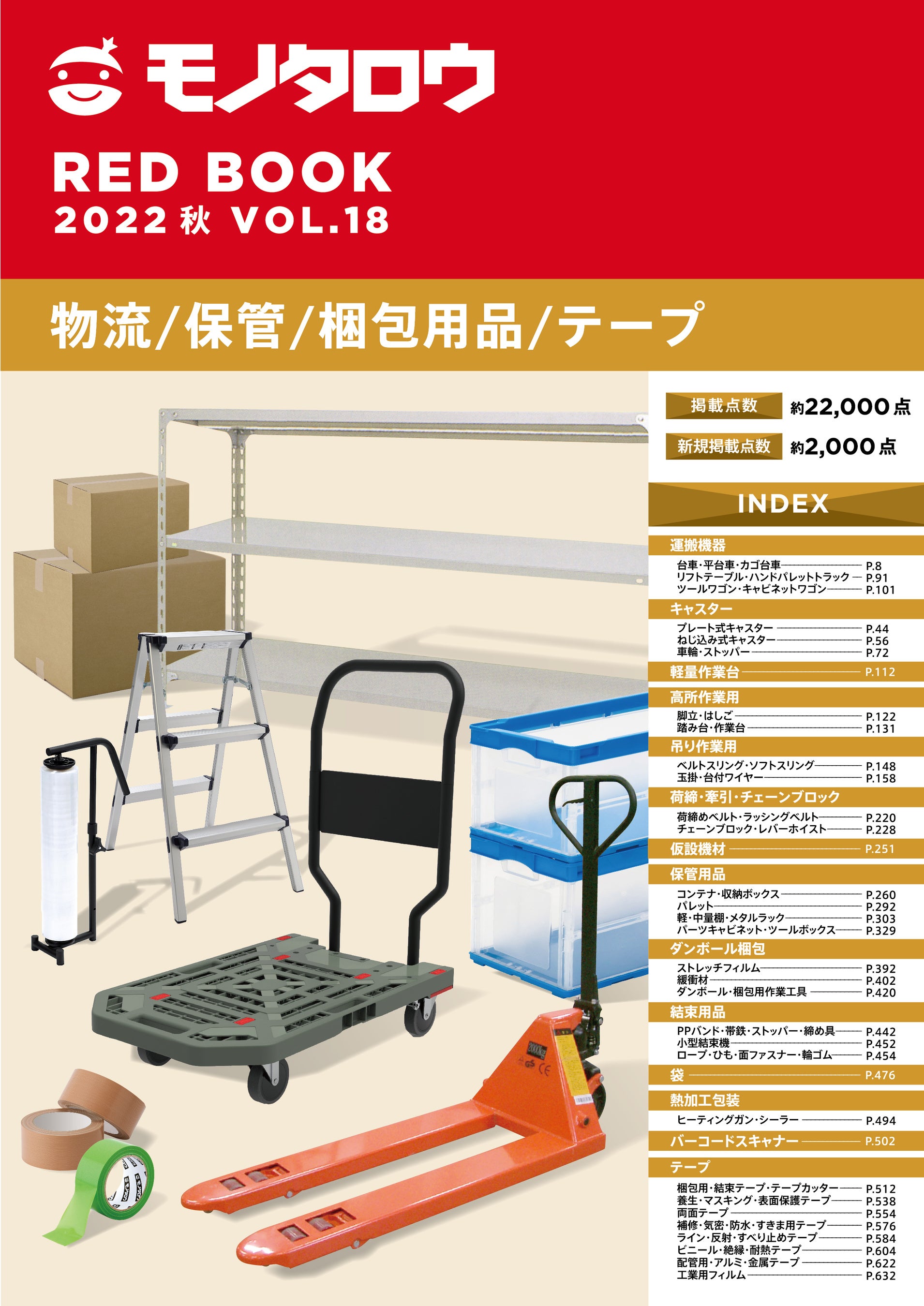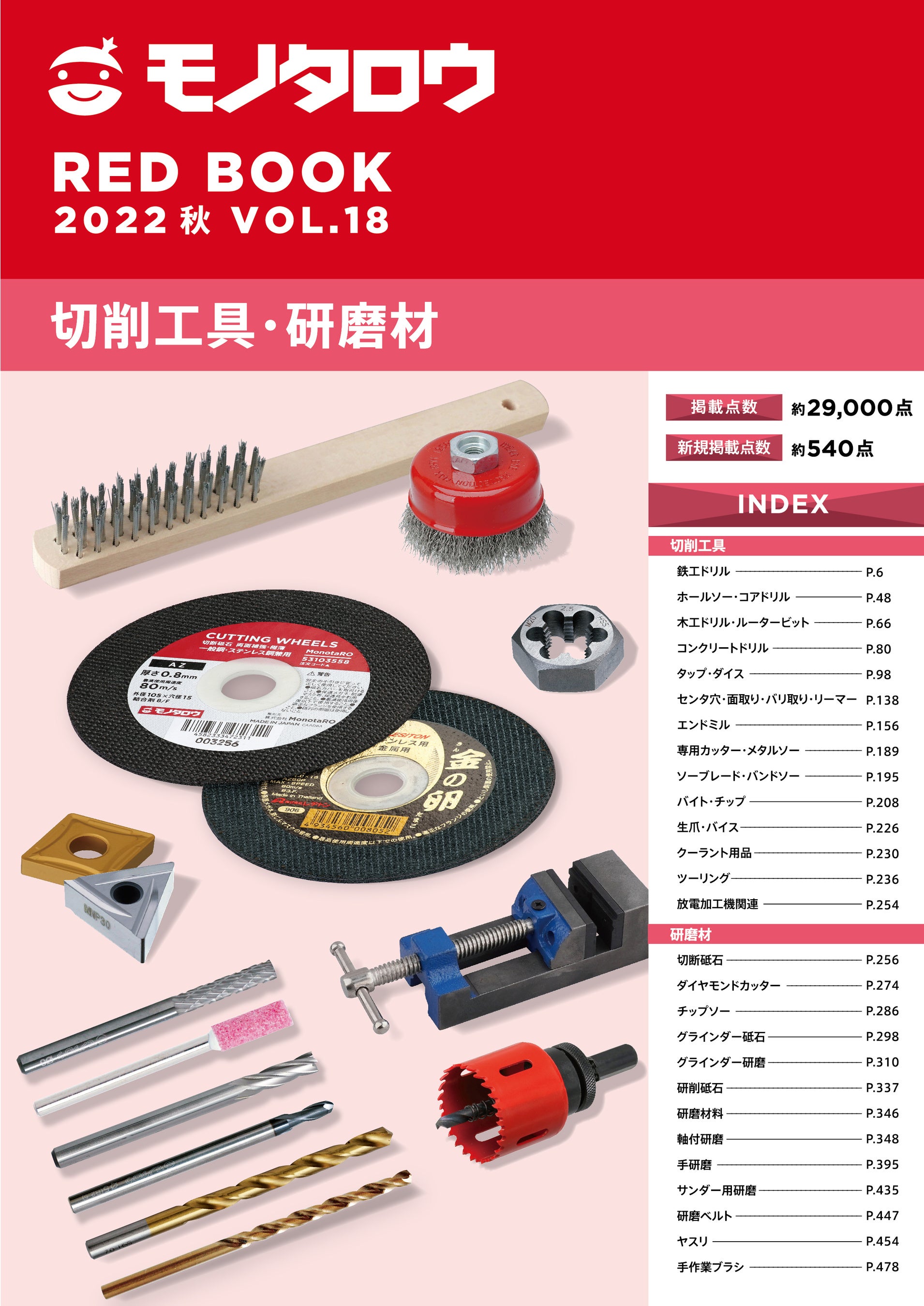 現場を支えるネットストア「モノタロウ」を運営する株式会社MonotaRO (本社:兵庫県尼崎市、代表執⾏役社⻑:鈴⽊ 雅哉、以下 モノタロウ) は、2022年9月25日に最新カタログ「RED BOOK 2022 秋 VOL.18」を発刊します。1,800万アイテムから抜粋した、幅広い業種のお客様にご活用いただける10冊の専門カタログです。新規取扱商品や新規モノタロウブランド商品、新サービスを紹介し、カタログを無料(※1)でお申込みいただけます。