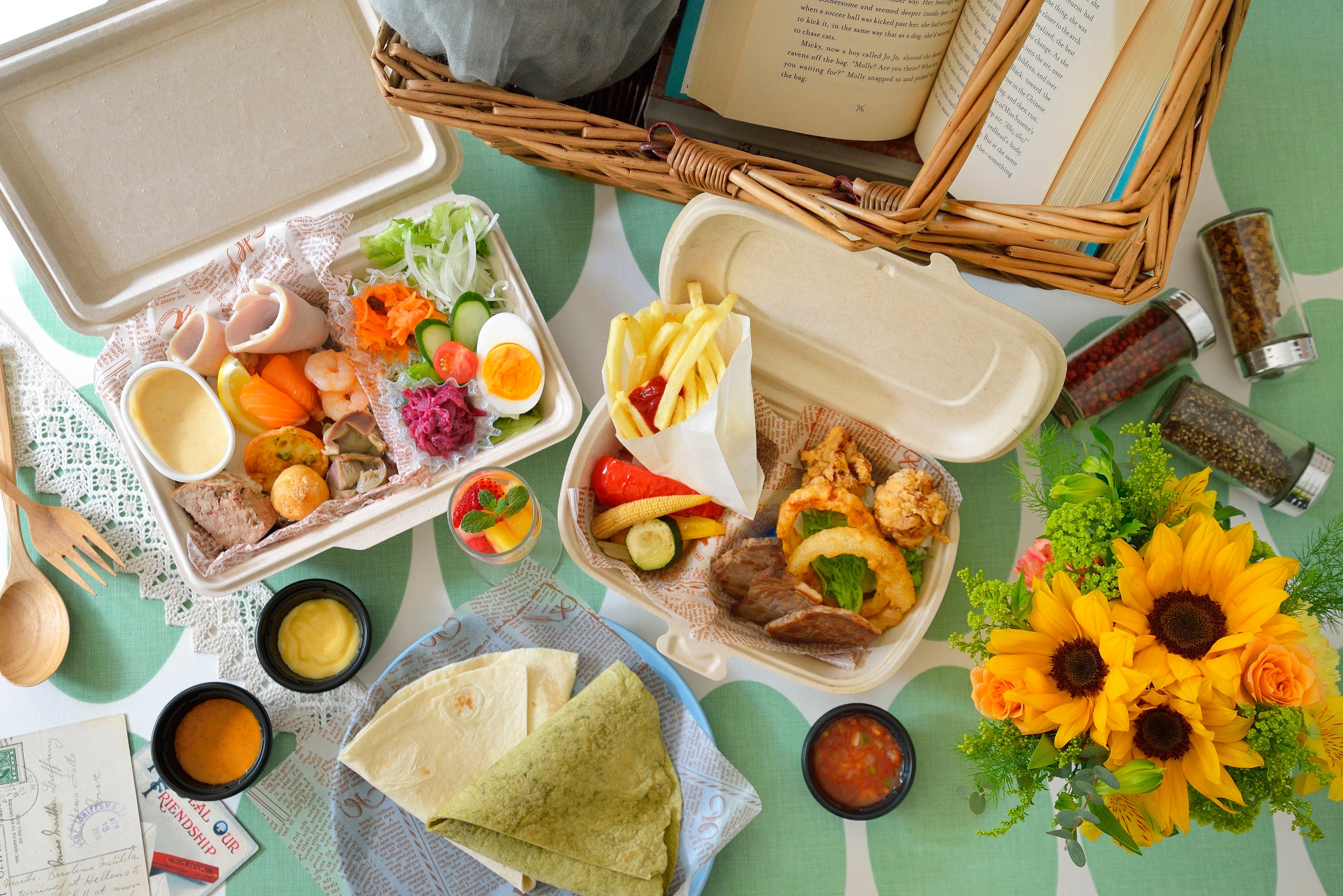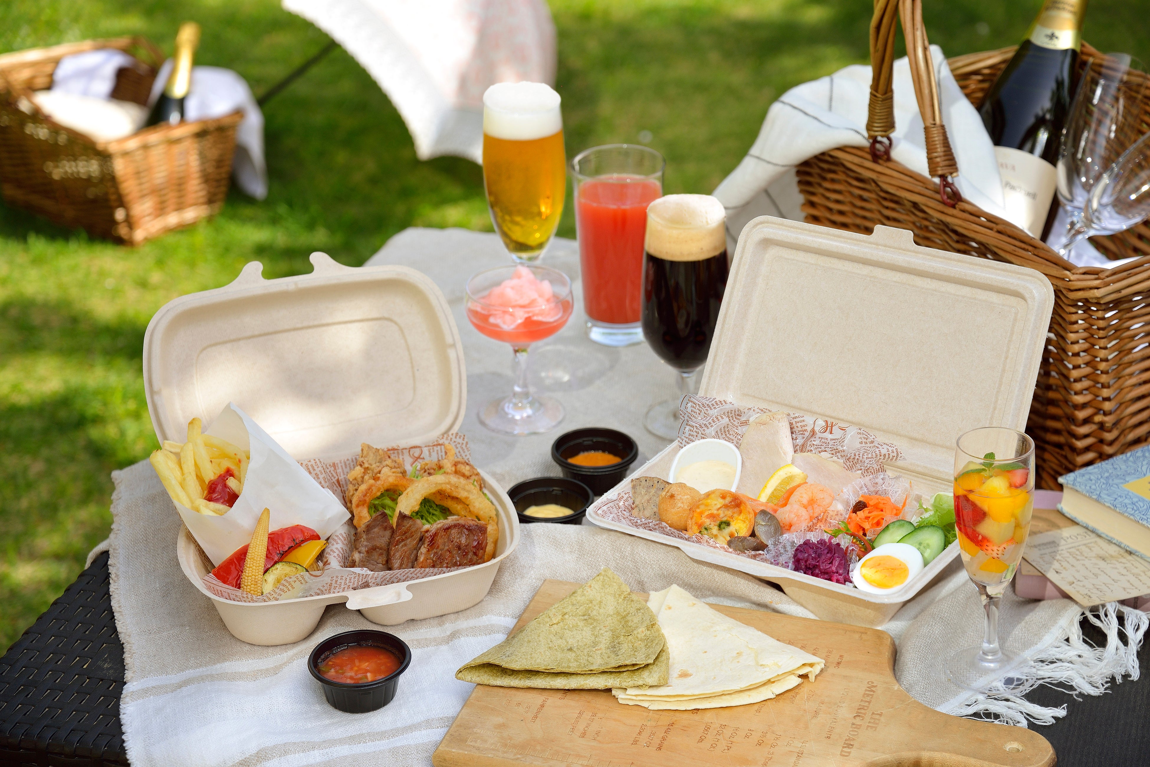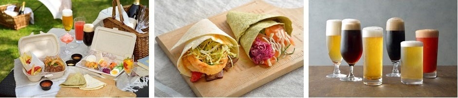 テーマは「大人の夜ピクニック」。フィリングなど、お好みでパンに挟んで味わっていただく「セルフサンドウィッチ」の他、ビーフステーキやフライドポテトなどビールにぴったりなメニューを、見た目も可愛らしいピクニックのようにバスケットに詰めてご提供いたします。