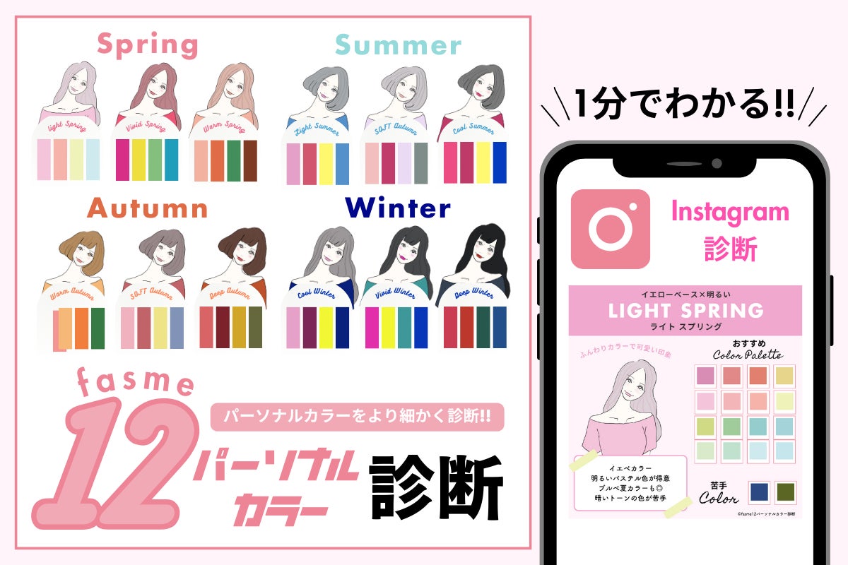 イエベ・ブルべを12タイプに分類し、似合う色のトーンまで分かる! トレンド発信メディア「fasme」、1分で完了する「12パーソナルカラー診断」公開