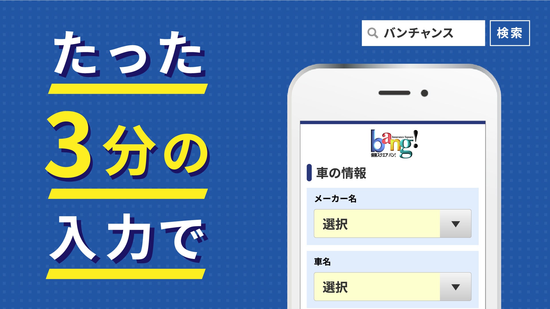 保険を選ぶ際には、数多くのプランがあって何を決め手にしたらいいのかわからなかったり、難しい用語が出てきたりするものです。そんなときに「保険スクエアbang! 自動車保険」を利用すれば、たった3分の入力で複数の保険会社の見積もりをオンラインですぐに比較できる、という内容になっています。もしCMを見かけたら、ぜひ「バンチャンス」で検索してみてください。