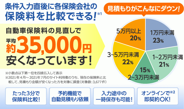 ※2:一部の保険会社につきましては、保険会社または損害保険代理店から届いた見積もり結果ページより契約