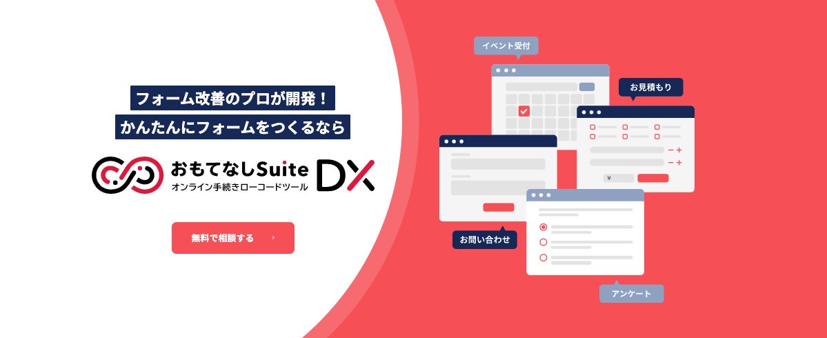 というような課題はありませんか? おもてなしSuiteなら、オンライン上の手続きがこれひとつで実現できます。 フォーム最適化領域でシェアNo.1のショーケースが貴社のDX推進をサポートします!