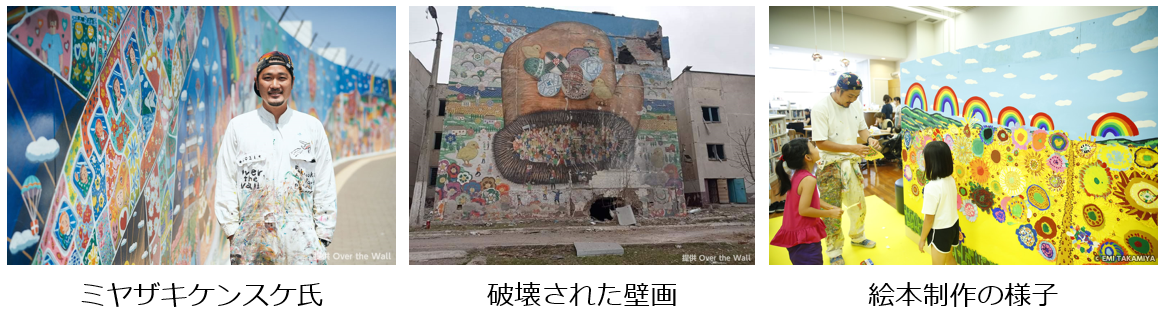 制作に携わったミヤザキケンスケ氏はウクライナ・マリウポリで、ウクライナ民話「てぶくろ」をテーマにひまわりをモチーフとした壁画を現地の子ども達とともに制作しました。しかし、その壁画はロシアの砲撃により破壊されてしまいました。テレビ西日本主催の絵本制作プロジェクトでは、ミヤザキケンスケさんとウクライナのシンボルであるひまわりをテーマに絵本を作り、福岡の地からウクライナへ、そして日本全国へ平和の想いを届けます。
