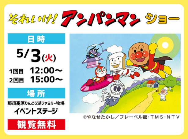 さらに、GW期間中の5日間、幅広い世代から支持されている人気者たちがりんどう湖に続々登場するステージショーを開催します。