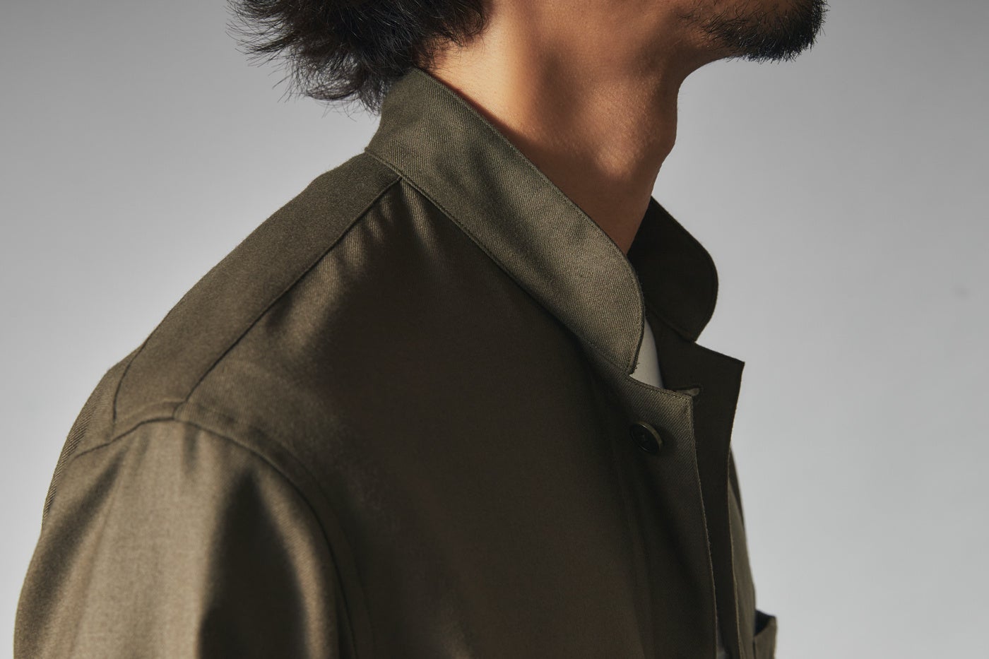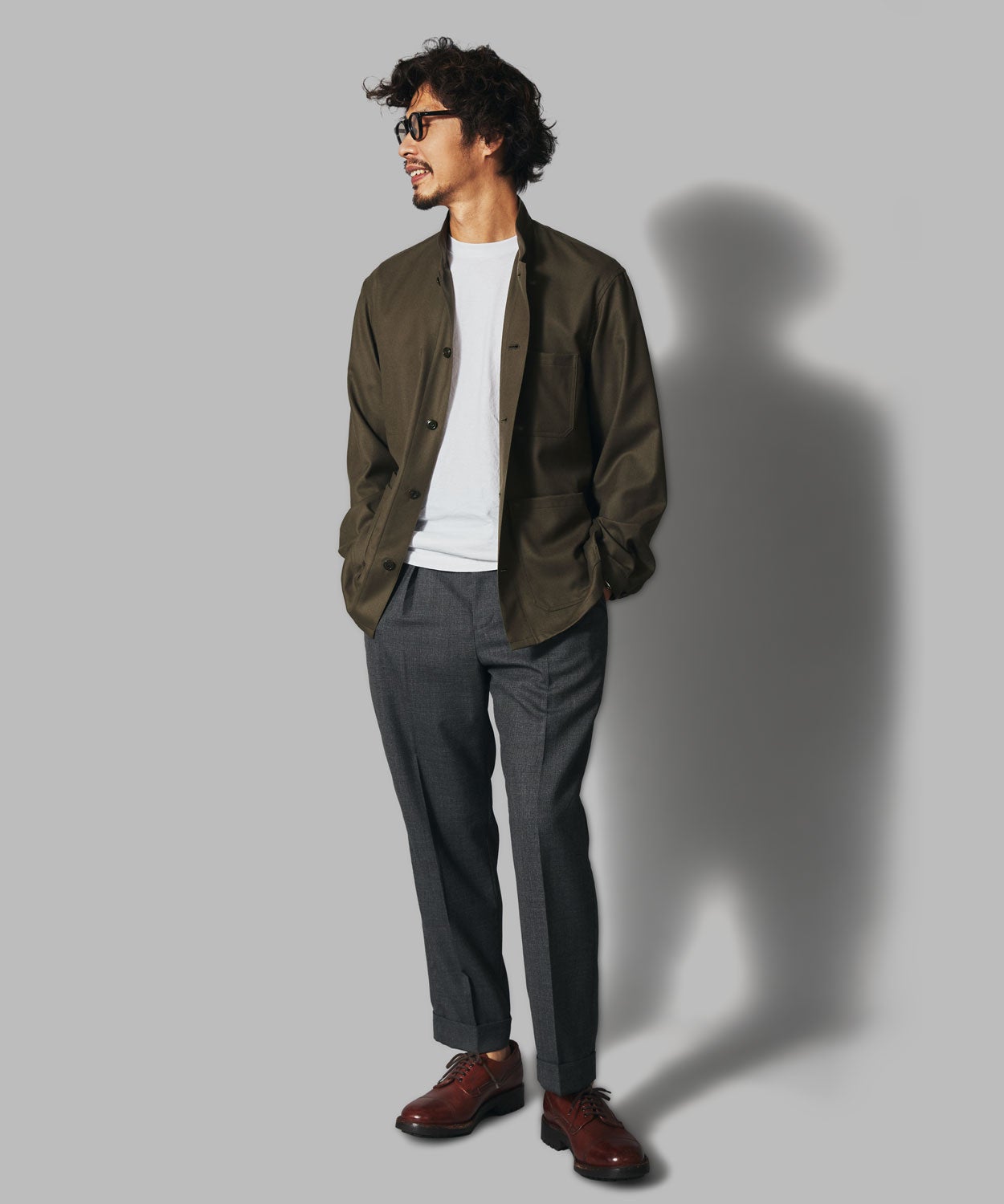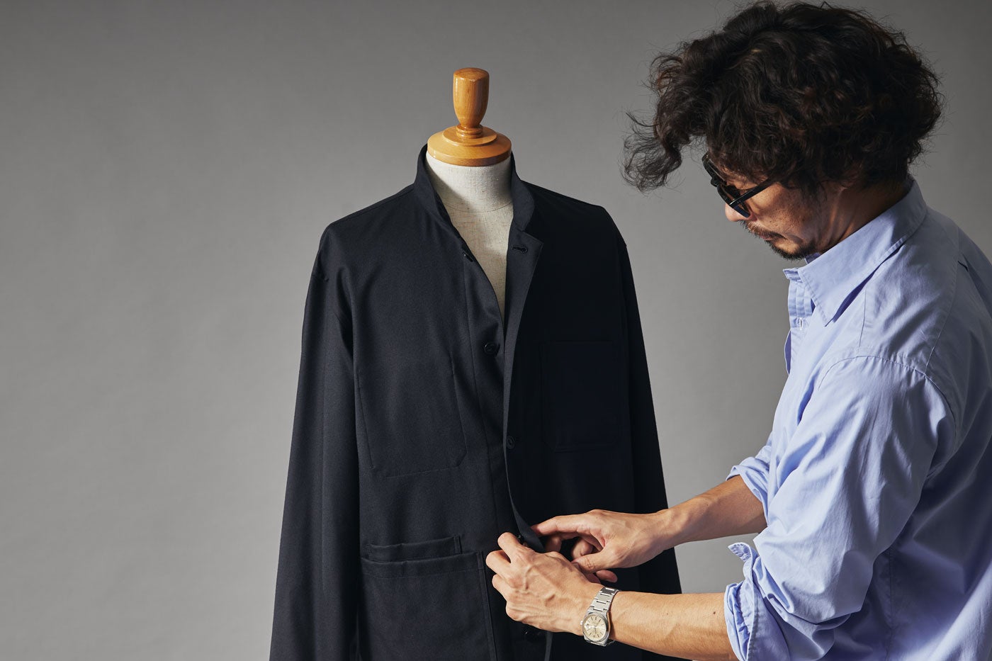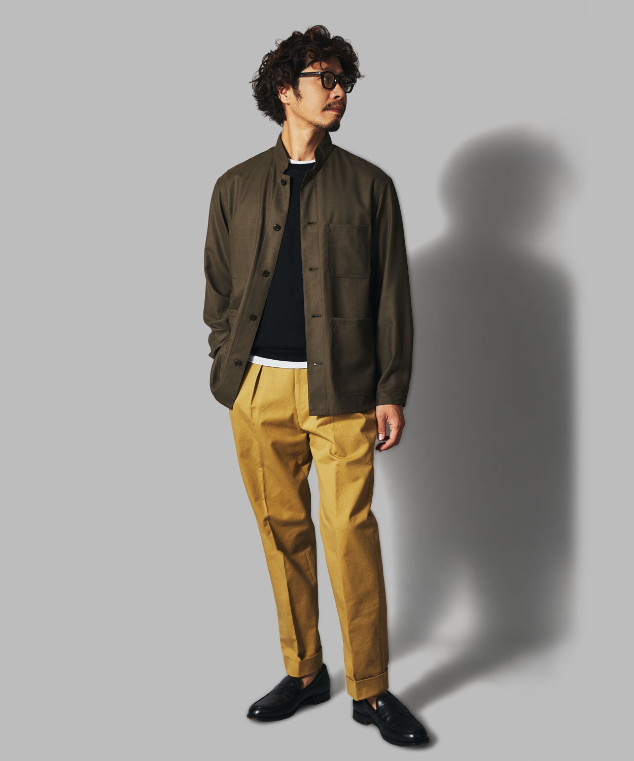 「とにかく一度、袖を通してみてほしいですね。 秋口ならカットソーの上に羽織るだけでサマになるし、冬には上にコートを着ても窮屈さは感じません。 あまり世の中にないシャケットを、という思いでスタンドカラーを採用しましたが、決して奇抜なアイテムを作ったわけではありません。 ワードローブのニューベーシックとして、あらゆるシーンで活用してほしい。そんな願いを込めたアイテムです」 (四方さん)