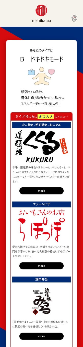 西川株式会社(本社:東京都中央区日本橋 代表取締役:菅野達志、以下nishikawa)は、2025年大阪・関西万博のサスティナブルフードコート『大阪のれんめぐり~食と祭EXPO~』に、新開発した自律神経センサー搭載の座圧分散 クッション「コンディシート(ココロミエール)」を導入し(※)、計測した生体情報を解析して来場者の身体状態に合わせた食事メニューを提案する新サービスを展開しています。