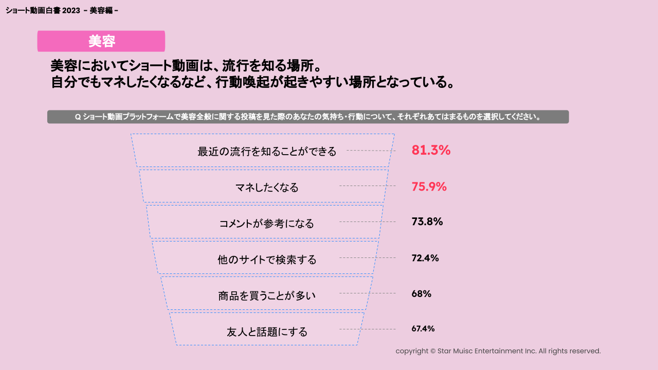 調査データの引用・転載の際は、必ず『出典:株式会社スターミュージック・エンタテインメント 「ショート動画 | 美容編」』と明記いただき、併せて下記広報担当までご連絡をお願いいたします。