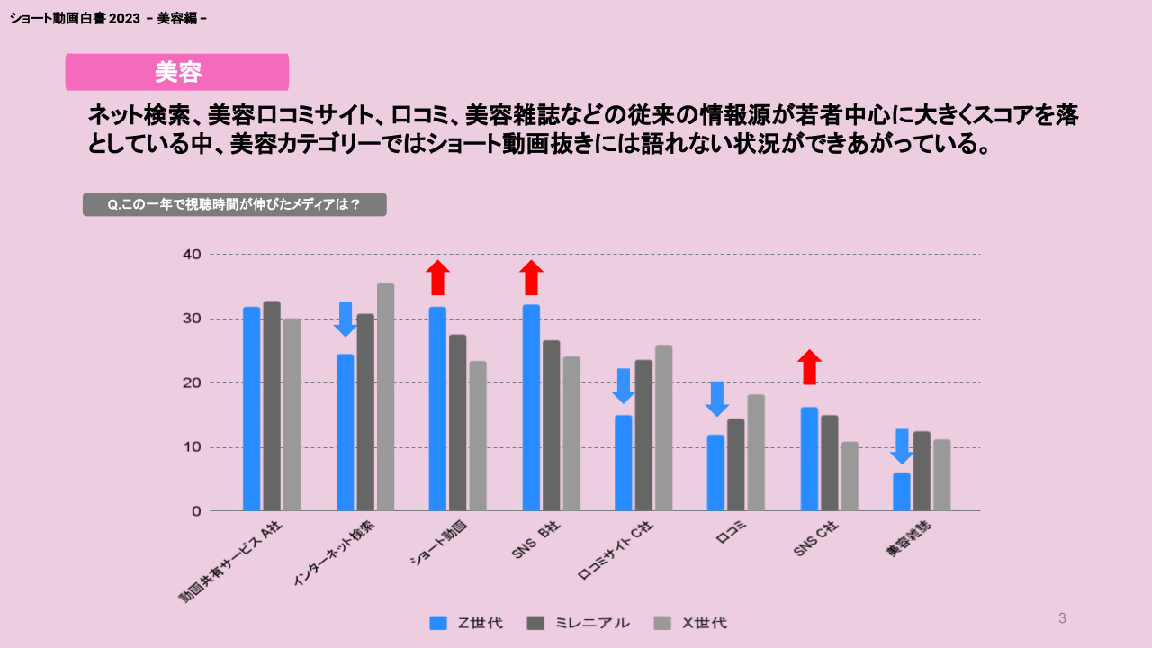 ネット検索や、従来型の美容口コミサイトがポイントを落としている中、美容カテゴリーではZ世代中心にショート動画抜きには語れない状況となっております。