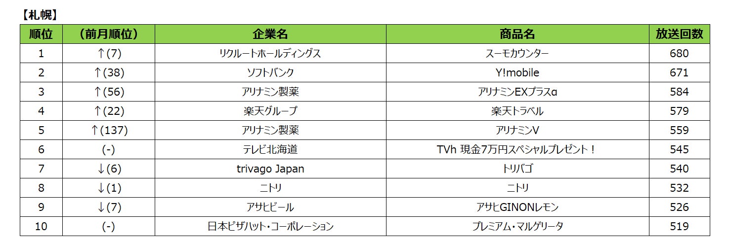 (※札幌地区にて受信障害が発生したため、札幌地区のランキングに一部変動があります。)