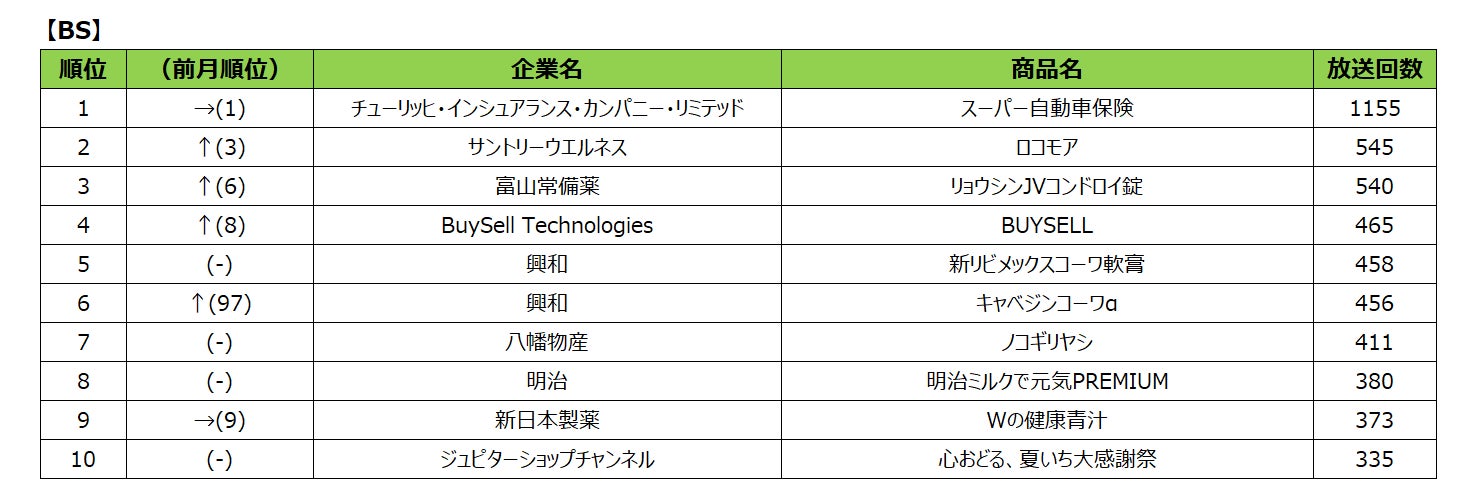 SMN株式会社(本社:東京都品川区、代表取締役社長:原山 直樹、以下SMN)は、2024年5月度の全国地上波25局、BS放送6局にて放送されたテレビCMの放送回数を調査し集計しましたので、お知らせいたします。