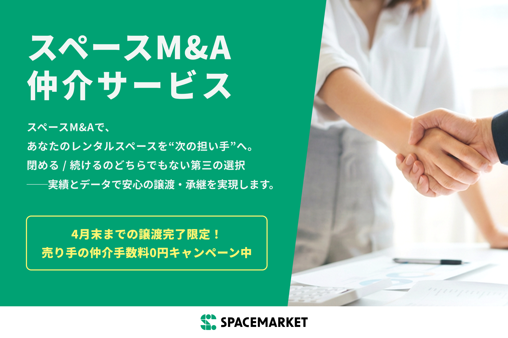 あらゆる場所で新しい定番体験を生み出すマーケットプレイス「スペースマーケット」を運営する株式会社スペースマーケット(本社:東京都渋谷区、代表取締役社長:重松大輔、以下、スペースマーケット)は、レンタルスペースの売却・購入を希望するホスト(運営者)向けに、マッチングから譲渡完了までを支援する「スペースM&A 仲介サービス」を本格開始いたしました。本サービスでは、運営実績となるレビューを新ホストへ継承できる独自のレビュー引き継ぎオプションを提供し、レンタルスペースにおける新たな出口戦略と健全な事業承継の形を提案してまいります。