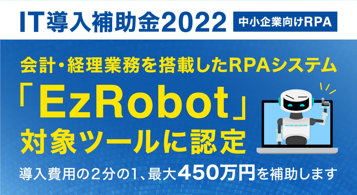 この度、IT導入支援事業者である株式会社Wizは、経済産業省「IT導入補助金2022」において、会計・経理業務を搭載したRPAシステム「EzRobot(イージーロボット)」のITツール認定を受けました。