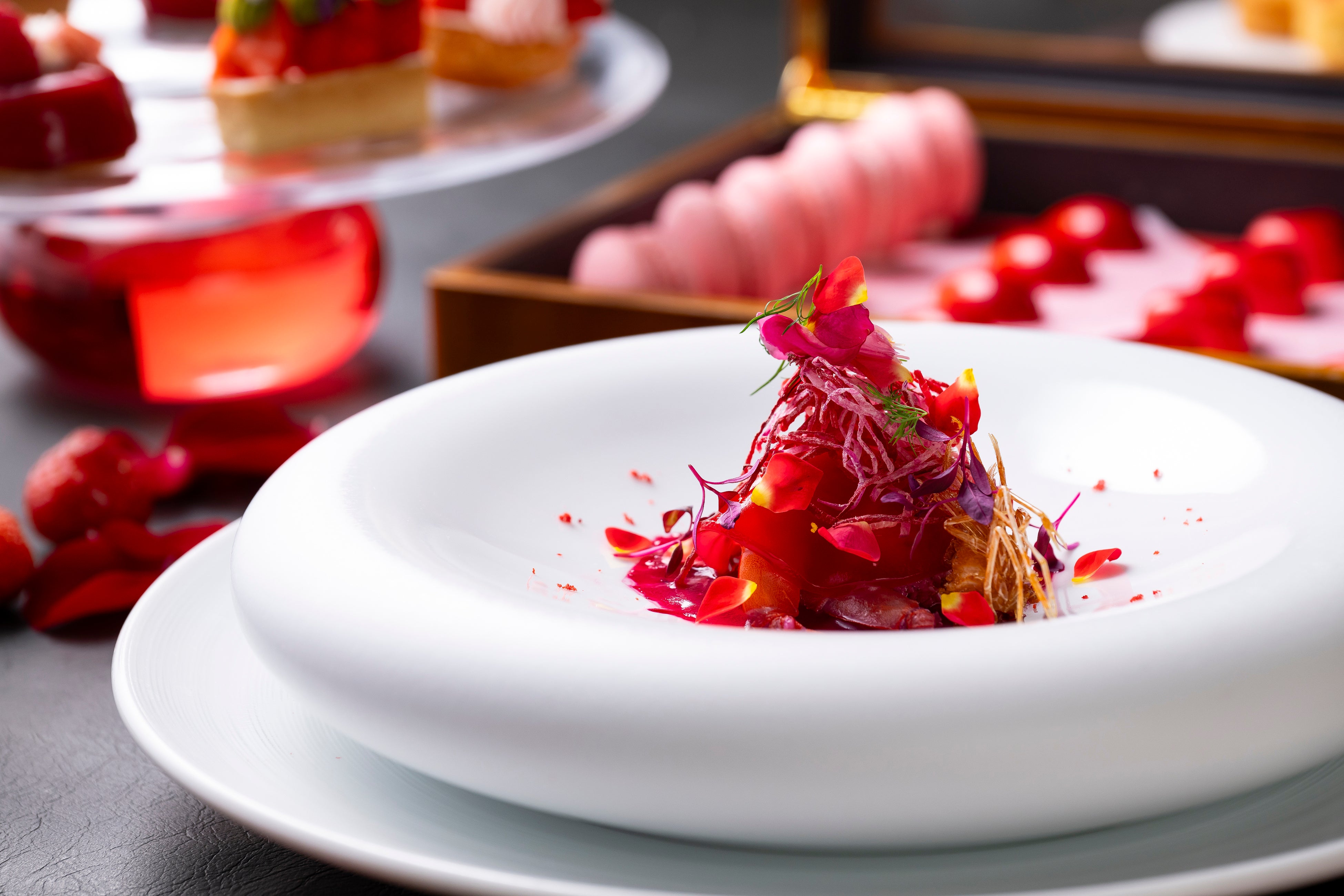 色鮮やかな“真紅”を基調としたコース仕立てのアフタヌーンティー