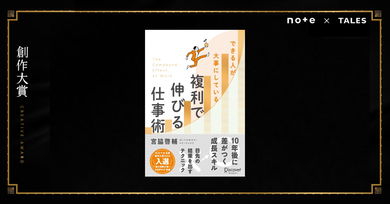 日本最大級の創作コンテスト「創作大賞2024」ビジネス部門で入選を果たした、宮脇啓輔さんの作品が書籍化。受賞作『「頭の回転が速い」を科学する』に改稿を重ね、『できる人が大事にしている 複利で伸びる仕事術』としてディスカヴァー・トゥエンティワンから発売されました。