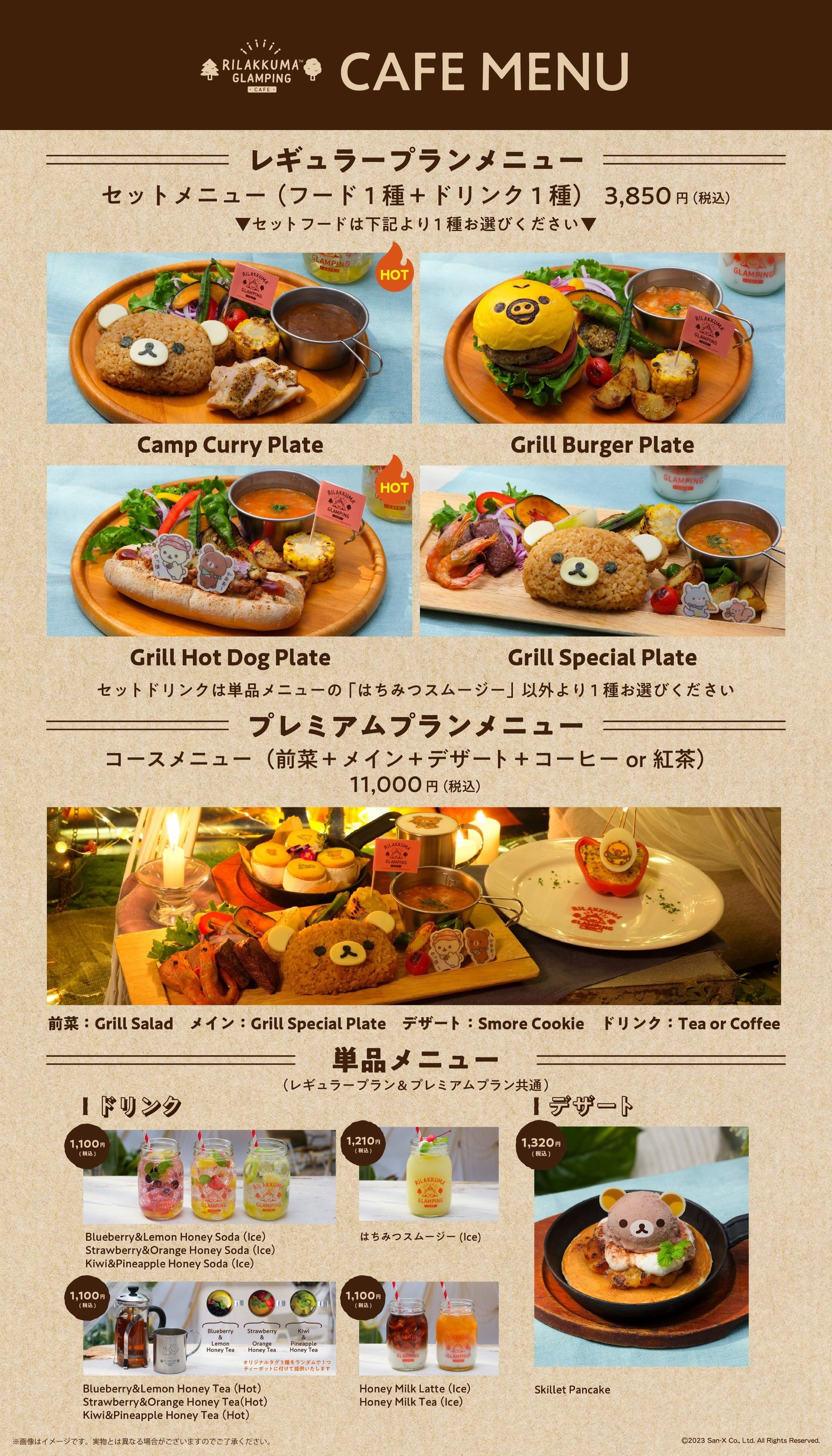 『リラックマグランピングカフェ』では、時間帯によってカジュアルなレギュラープランとラグジュアリーなプレミアムプランをご用意!