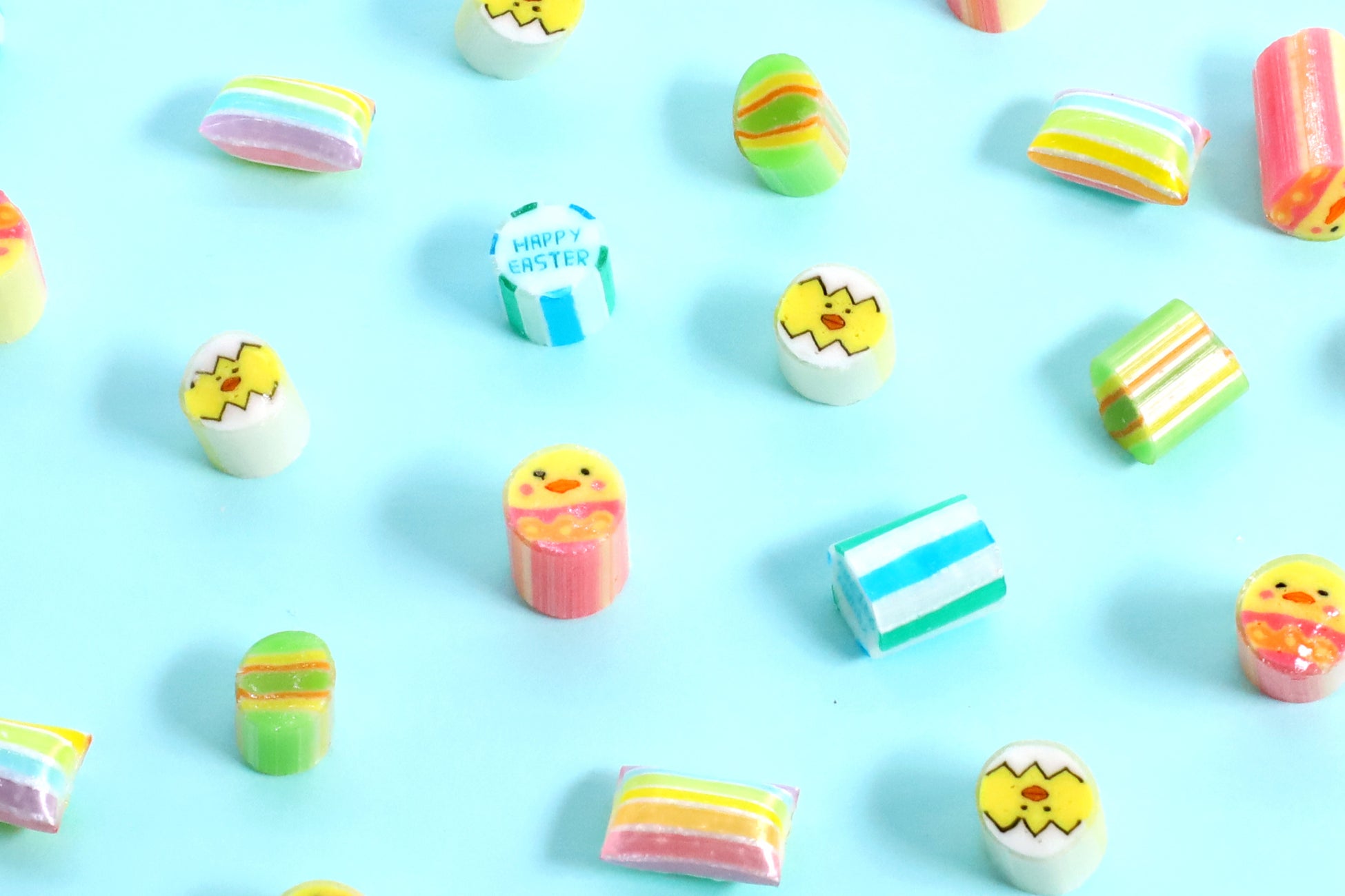 文字通り、イースターの “目玉” 商品として開発した「目玉焼きキャンディ」です。目玉焼きの照りや色味を再現するため、うまく半熟卵に見えるよう職人が試行錯誤を重ねた商品です。味はポップなコーラフレーバーで、見た目とのギャップが何とも驚きのキャンディです。