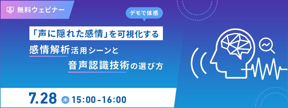 【オンラインセミナー】「声に隠れた感情」を可視化する~感情解析活用シーンと音声認識技術の選び方~【7月28日(木)開催】