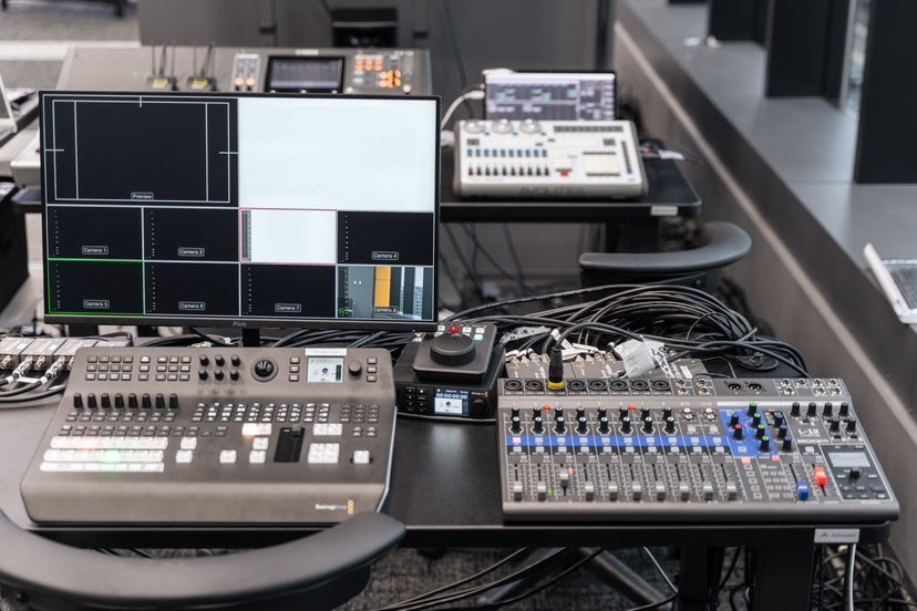 メディアスイッチャー、オーディオミキサー、リプレイヤー、4Kビデオカメラ等各種配信機材も完備。