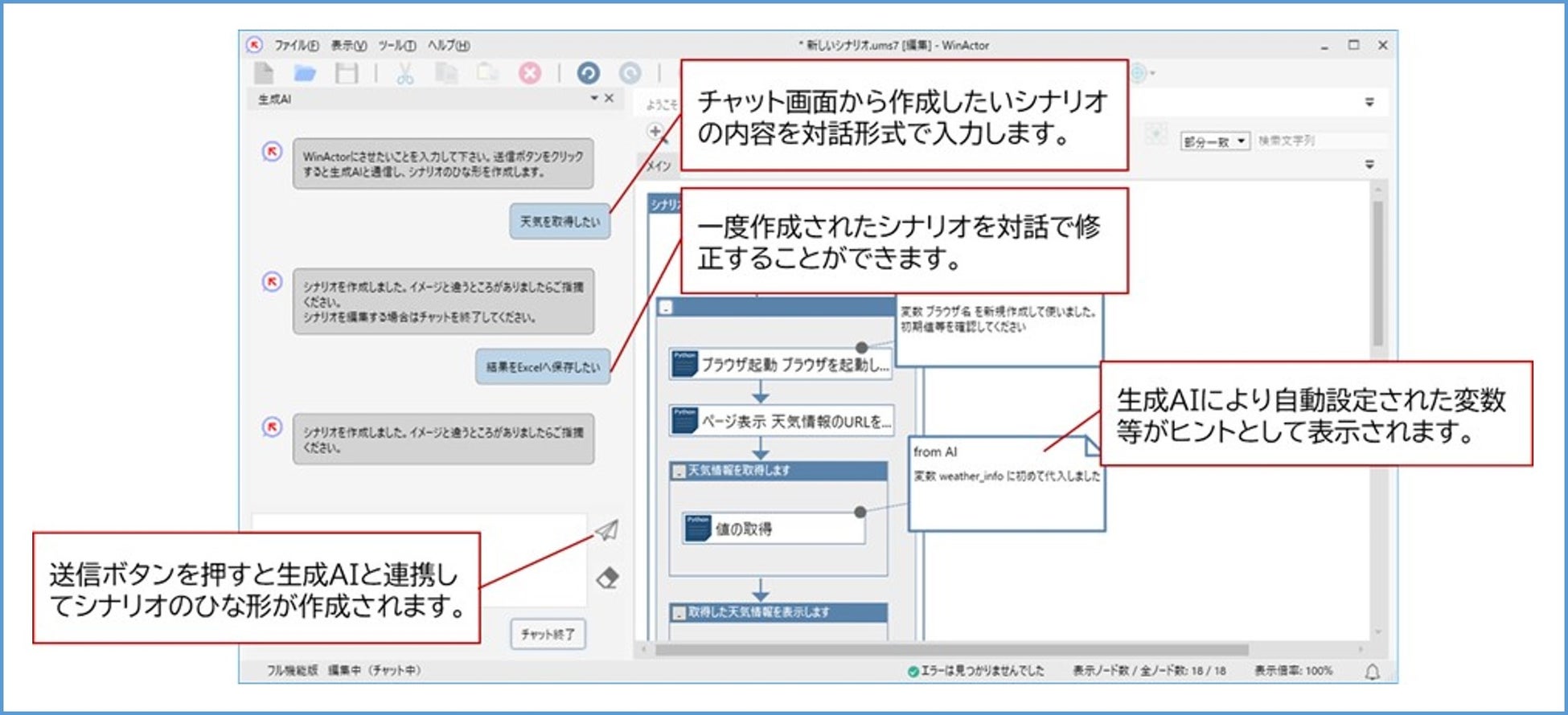 (2)はじめてのシナリオ作成でも、生成AIとの対話により簡単に作成できる機能