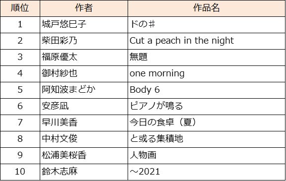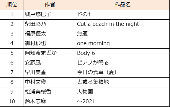 ■シェル美術賞展2021「オーディエンス賞」投票結果(10位まで) 総投票数:2,795