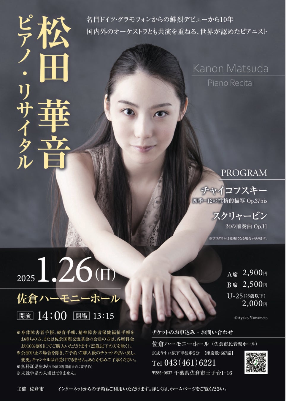 2025年1月26日(日)松田華音ピアノ・リサイタル14:00開演 (佐倉ハーモニーホール)