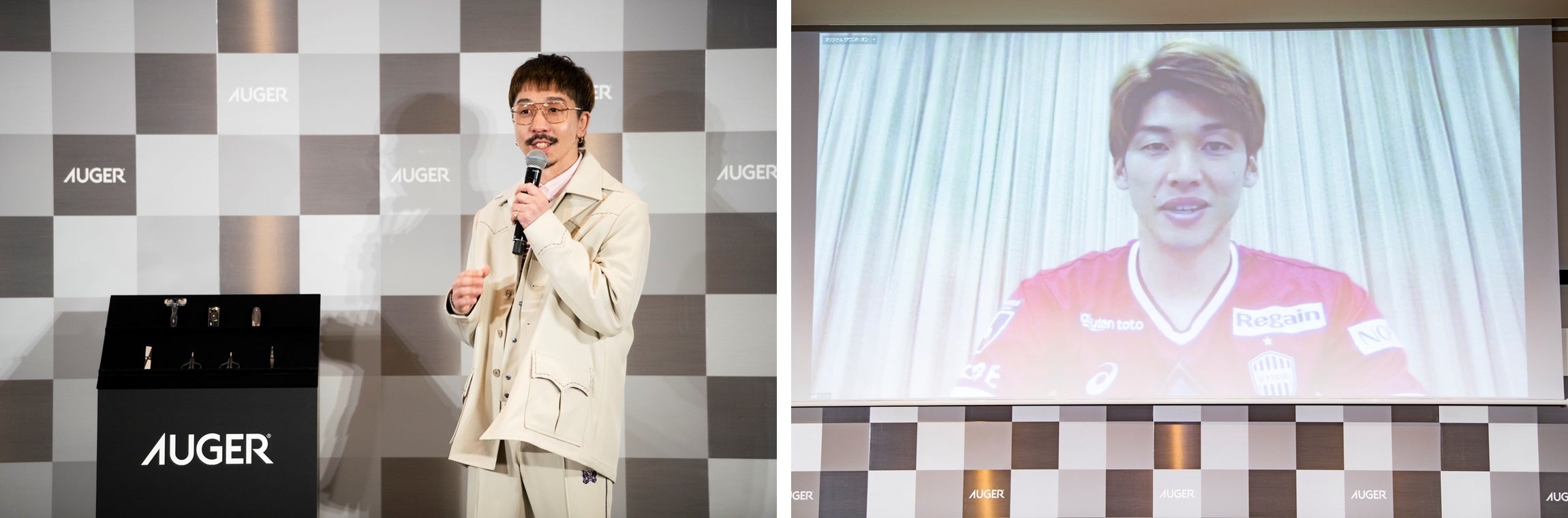 「AUGER」では、様々なジャンルの第一線で活躍している人物のブランドアンバサダー起用や、コラボレーション施策を通じて「身だしなみ」の重要性について発信していく予定です。eスポーツプレイヤーとして活躍しているももちさん、チョコブランカさんのインタビュームービーや、プロバスケットボール選手の富樫勇樹さんのインタビュームービーと、ビデオメッセージも紹介されました。また、J1ヴィッセル神戸に所属し、サッカー男子日本代表でもある大迫勇也さんがオンラインで登場。さらに、イベント会場には、「AUGER」のブランドコンセプトを元に制作した新曲「STEP IT」を手掛けた、Nulbarichのプロデューサー、シンガー・ソングライターのJQ(Vo.)さんが登場しました。