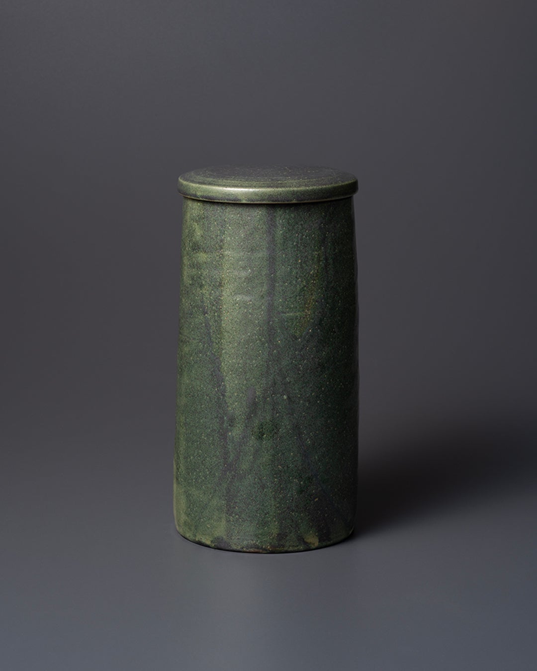 です。文筆家、音楽家、料理人など色々な方々と共に酒を飲み、料理を食べ、語り合うというのが隆太窯の夕食風景です。その作陶と生活スタイルは、太亀さんにも受け継がれています。太亀さんは三島手の技法を参考に独自の表現を生み出しました。健太さんは未来への願いを託す器として経筒、そして日々を彩る皿、湯呑などを制作しています。経筒は花器としても、オブジェとしても素敵な作品です。
