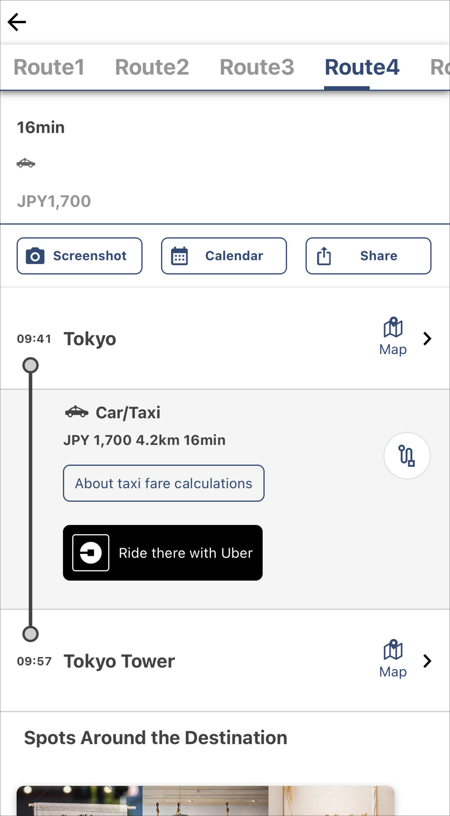 今回の連携により、『Japan Travel by NAVITIME』のルート結果から、「Uber」に対応したタクシーの配車ができるようになります。