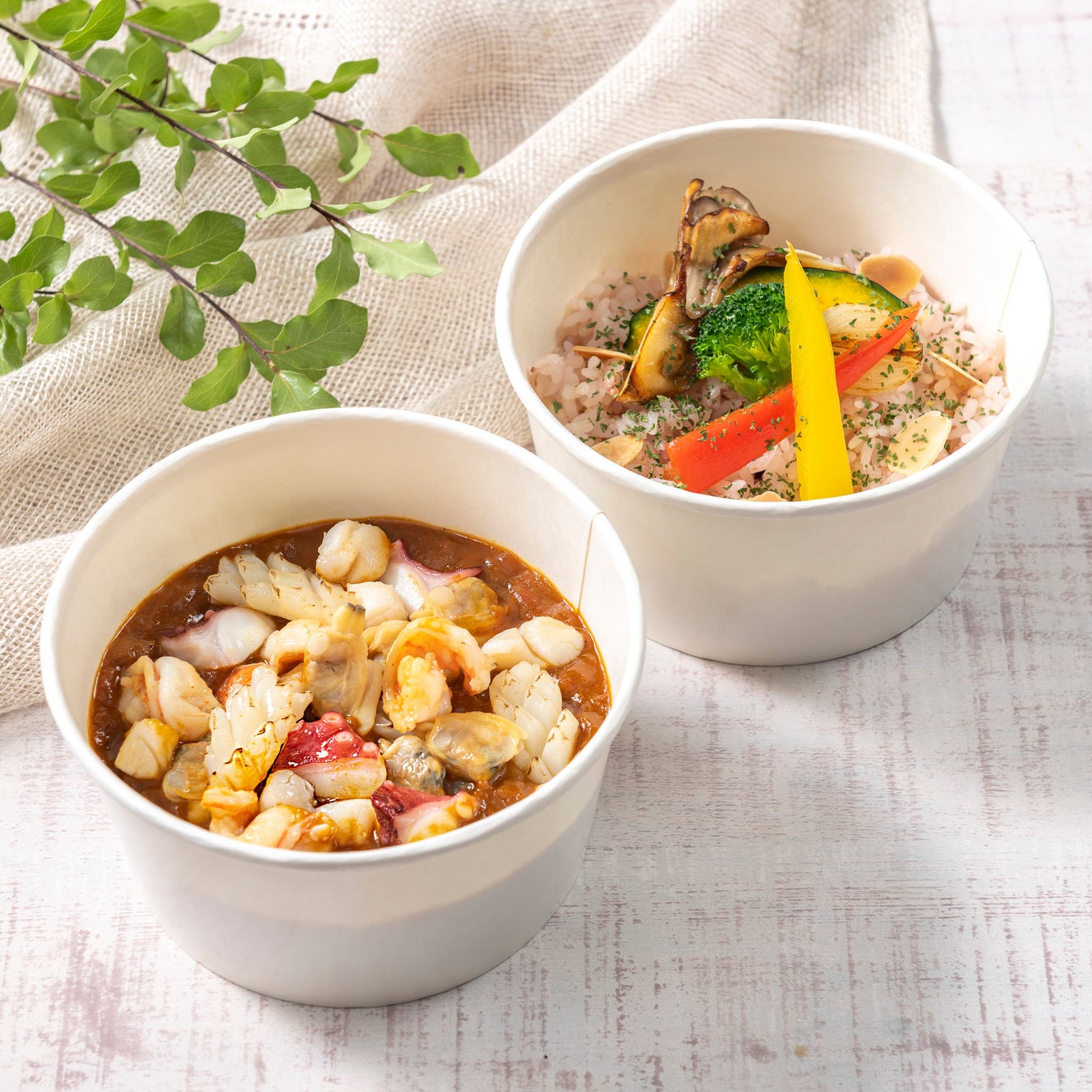 海老や小柱、烏賊などの魚介が旨味の層を重ね、十六穀米の香ばしさと彩り豊かな野菜が全体の風味をいっそう引き立てます。