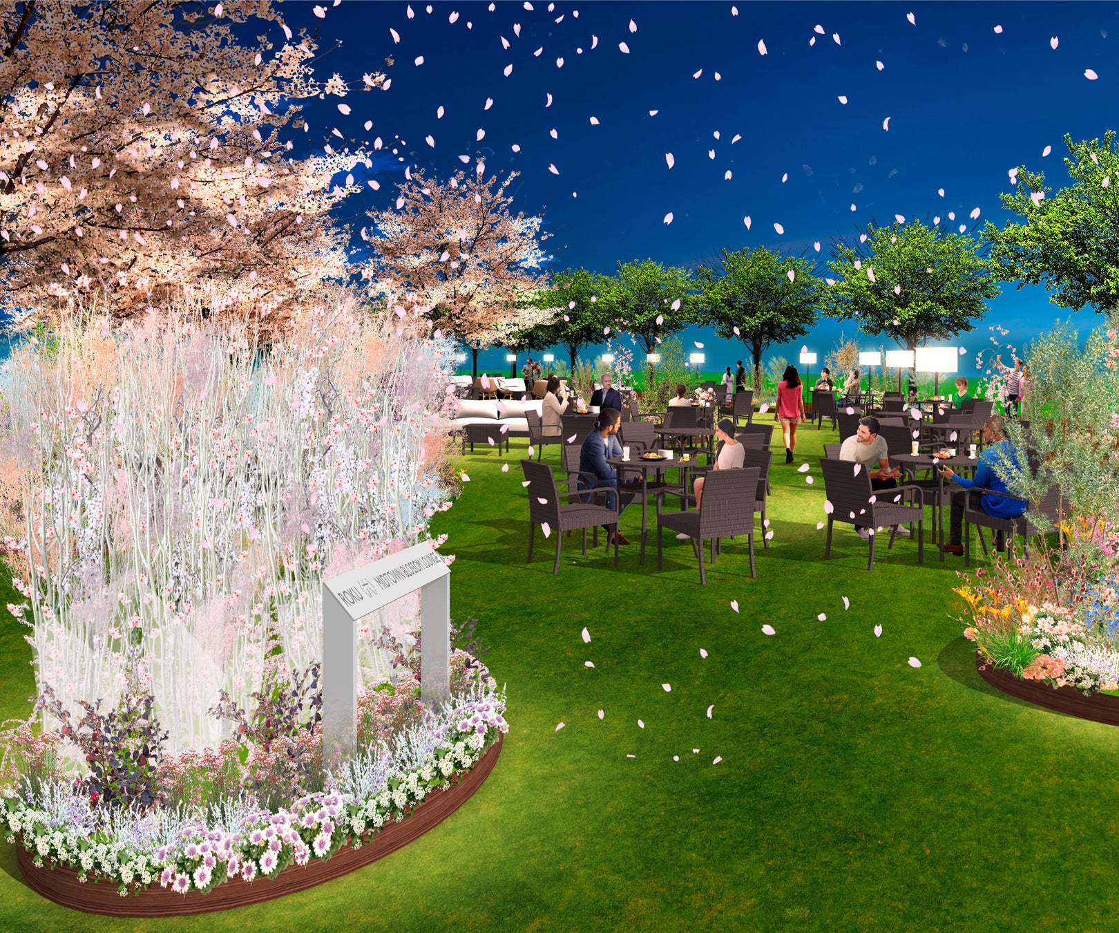 ● ライトアップされた桜を眺めながら、夕方以降も楽しめる都心の屋外ラウンジ