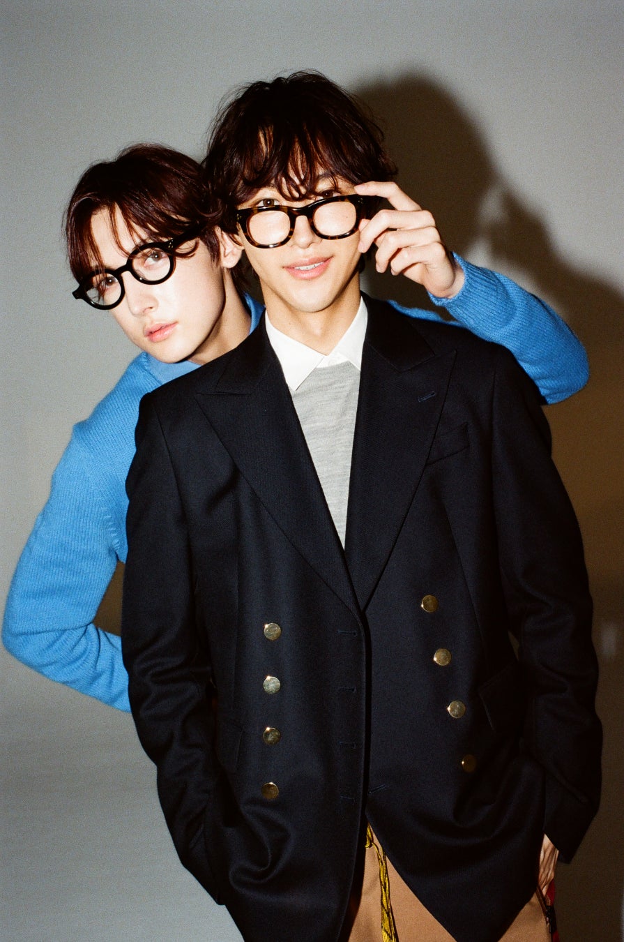 ビジュアルでは、本多大夢さんがジャケットスタイルに、イエローデミのウエリントンを合わせ、浜川路己さんは、表情を柔らかく見せるラウンドを、鮮やかなブルーのセーターと合わせたスタイルを披露しています。