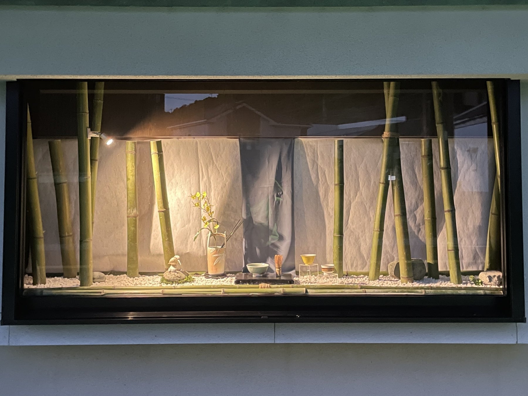 ウィンドウの大きさと構成がとてもよく合っていると思います。竹や石が自然な感じでバランスよく配置されていて清涼感がありました。端々まで気遣いがされていて良い空間となっています。