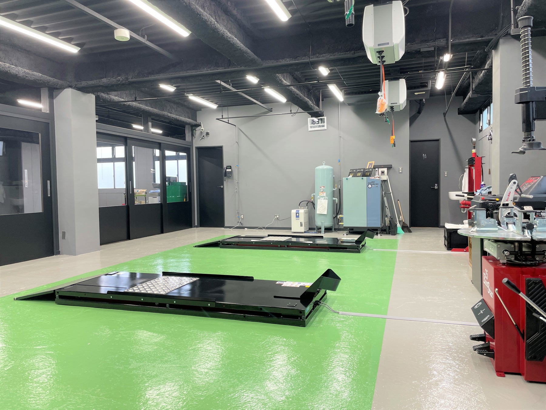 お客様に安心で、安全なモーターサイクルライフを過ごしていただくため、明るく作業のしやすいスペースを確保したテクニカルセンター。
