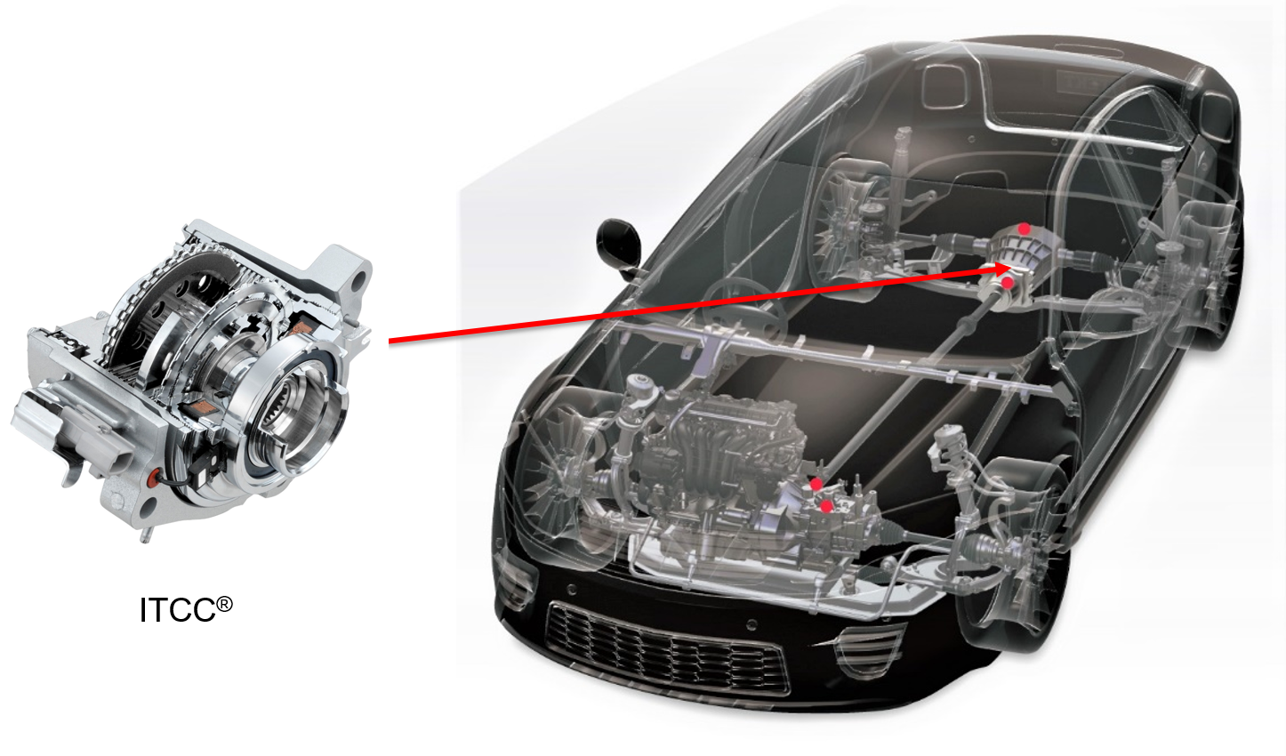 本発明は、主に前輪駆動車両をベースとした「オンデマンド4WDシステム」に搭載され、エンジンから出力される駆動力を後輪に配分する電子制御カップリング(ITCC🄬)に関する技術です。