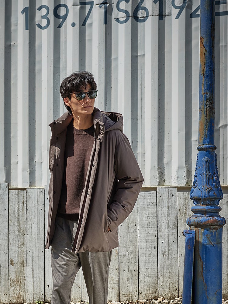 『ハイブリッド ダウンジャケット』は、ビジネススタイリングに合わせやすいブラック、ブラウンの2色展開にジャケットの裾が出ない丈感を採用。キルティングデザインを省くことでダウンジャケットが持つカジュアルさをやわらげました。TOKYO RUNらしいミニマルなデザインのためエイジレス、シーンレスに活躍します。