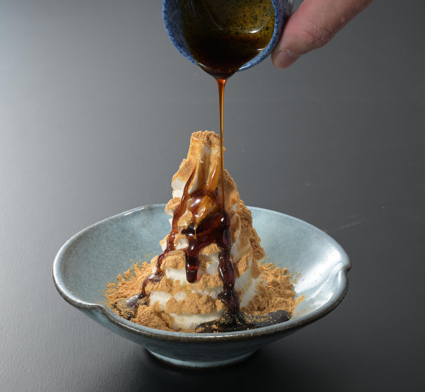 ふわっと広がるきな粉の香りと、プレミアムバニラアイスの濃いミルクの甘さが絶妙に調和し、さらに黒みつをひとまわしかけることで、コク深い味わいとほろ苦さがアクセントになり、素材の良さが引き立つ、贅沢な味わいをお楽しみいただけます。