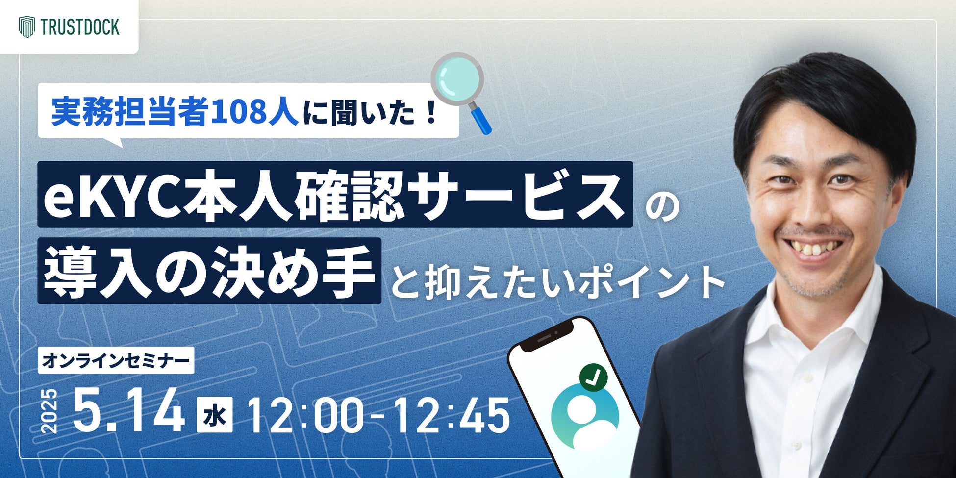 5/14(水)12時から、eKYC本人確認の専門企業である株式会社TRUSTDOCKが無料オンラインセミナー開催します。