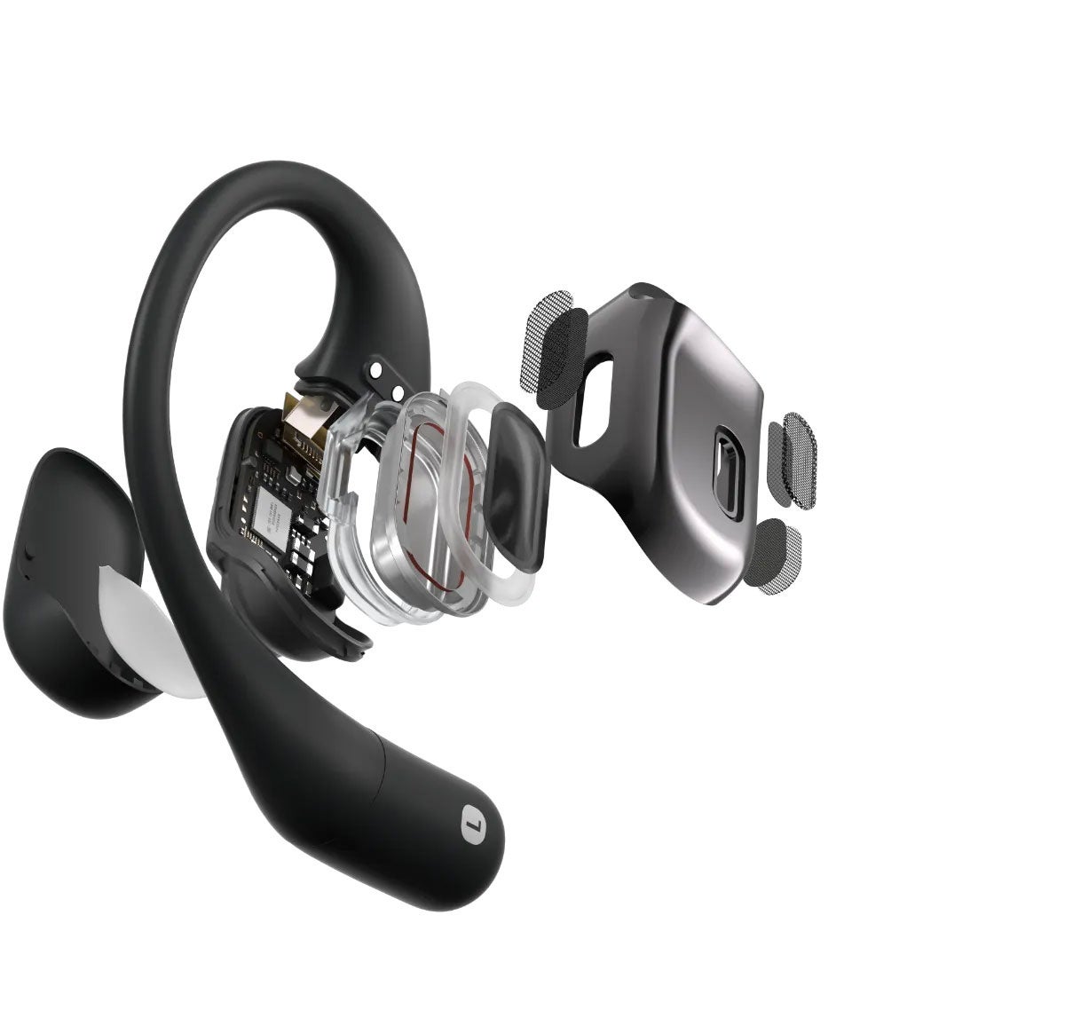 OpenFitはデュアルマイクを最適な位置に配置することで、騒がしい環境でも、通話時、人の声の微妙なニュアンスを捉え、最も効果的なアダプティブ・ビームフォーミング効果を形成し、ノイズキャンセリングを強化します。クリアな音で聴けるとともに、クリアな音を届けることができます。