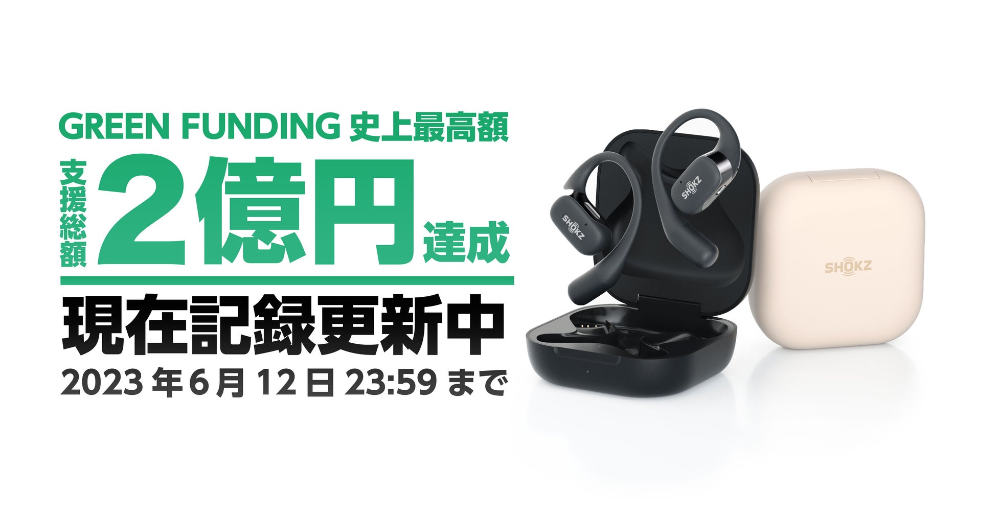 【史上最高額2億円突破!】GREEN FUNDING史上最高の支援総額2億円突破!Shokz 完全ワイヤレスイヤホンOpenFit 6月12日まで。