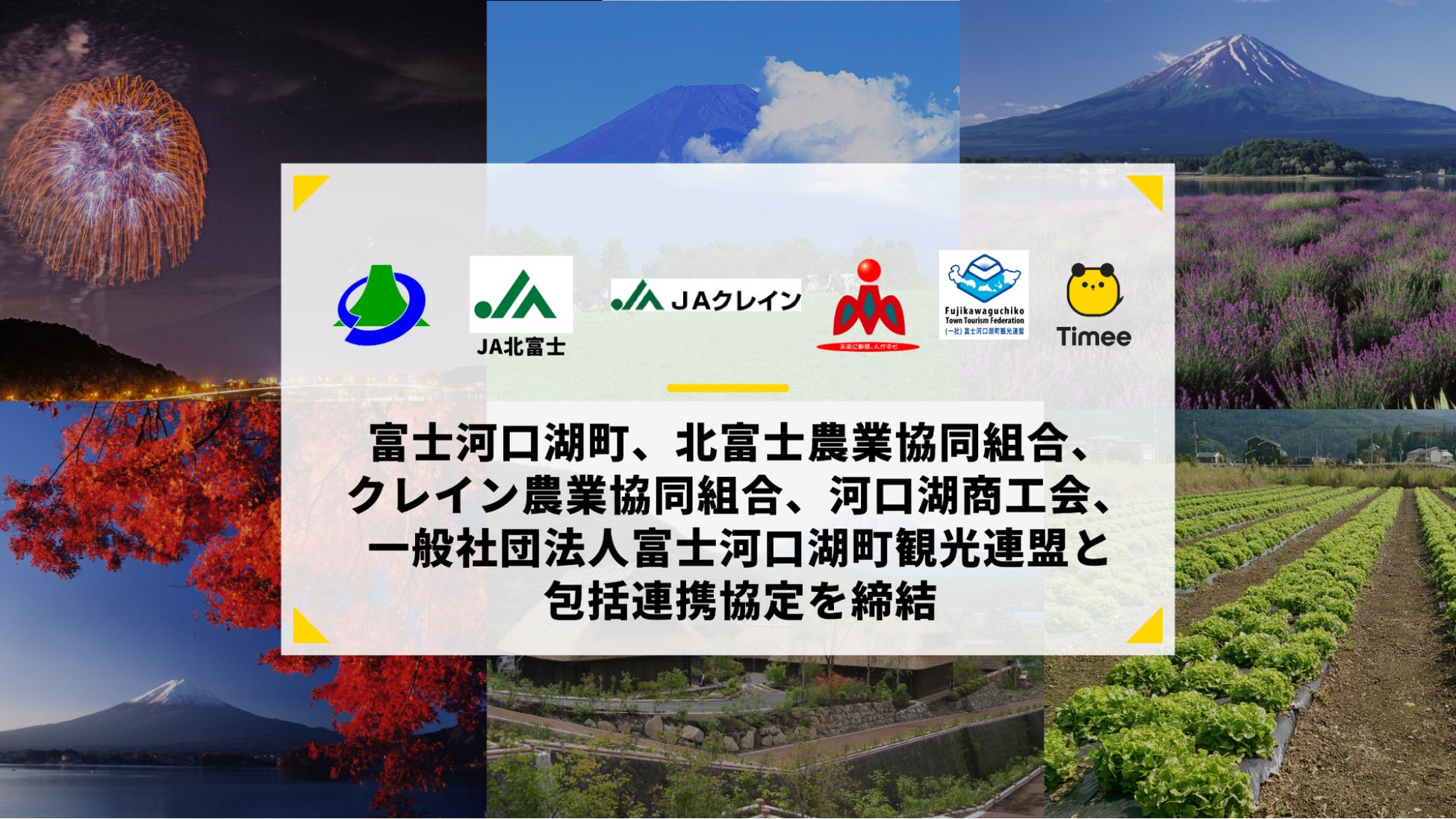 タイミー、富士河口湖町、北富士農業協同組合、クレイン農業協同組合、河口湖商工会、一般社団法人富士河口湖町観光連盟との6者包括連携協定を締結