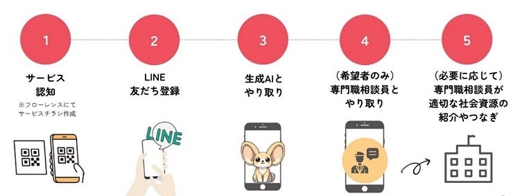 生成AI「AI(あい)ちゃん」が24時間365日、LINEで相談にのることで気持ちの傾聴・課題整理を行います。