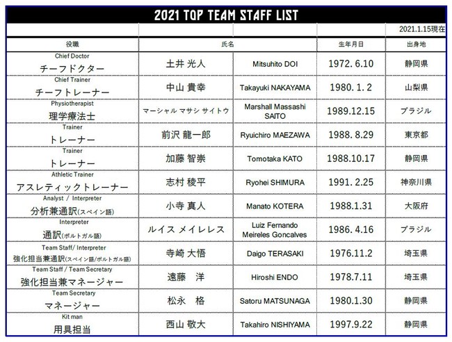 2021シーズン トップチームスタッフ新体制のお知らせ清水エスパルス2021年1月15日 12時00分いいね!数を読み込み中ですこのたび、2021シーズン トップチームスタッフの新体制が決定しましたので、下記の通りお知らせいたします。 すべての画像種類その他 ビジネスカテゴリスポーツダウンロードプレスリリース素材このプレスリリース内で使われている画像ファイルがダウンロードできます