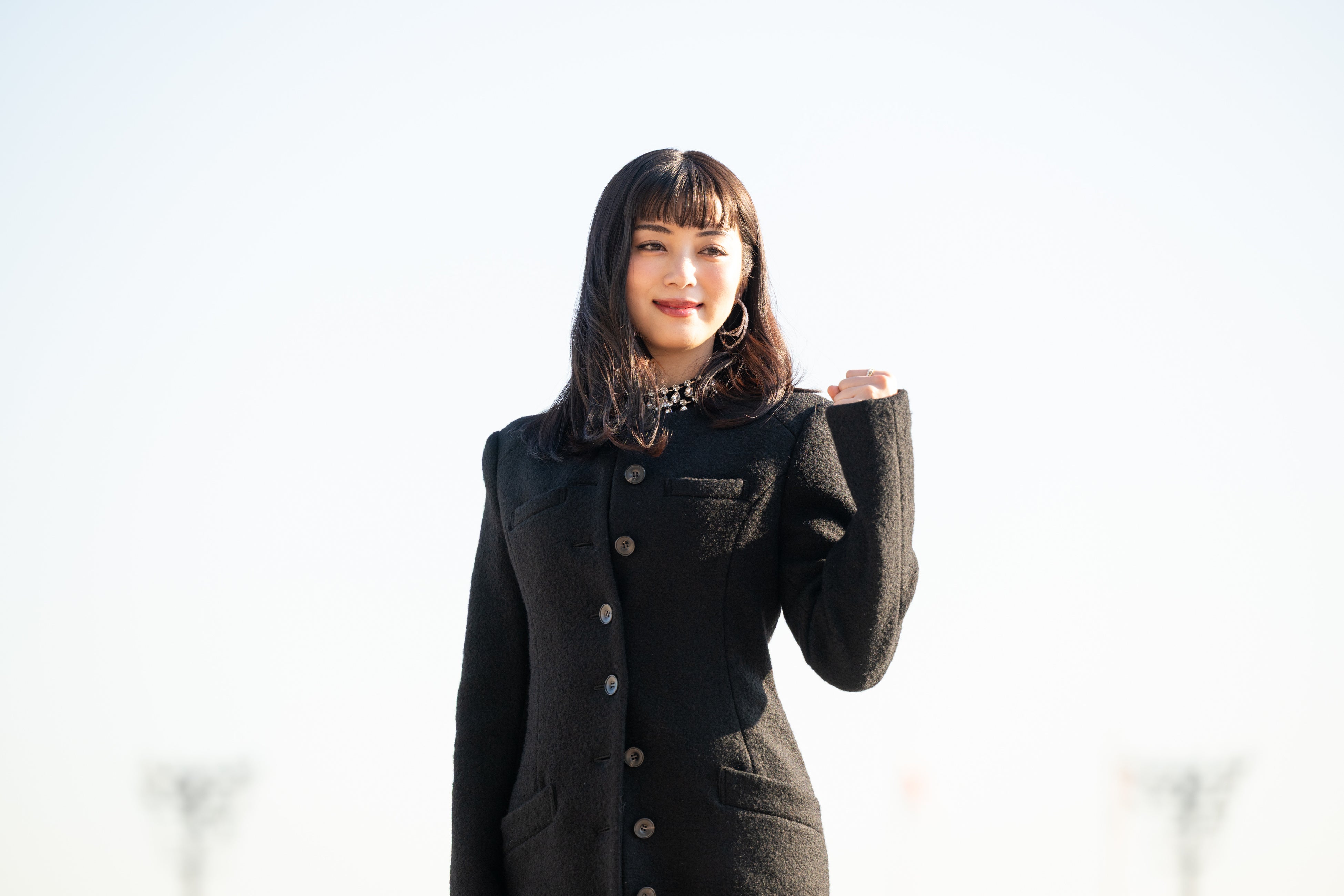 ミニトークショーでは黒のロングコートに大ぶりのアクセサリーを合わせた華やかな装いで、登場したエライザさん。師走とは思えない陽気に包まれていた大井競馬場で、開口一番来場者に「アツいですかー?」と呼びかけ会場を盛り上げました。年の瀬の大一番レースを控える大井競馬場の雰囲気を聞かれると、「お客さんが入った大井競馬場に来たのは初めてで、想像以上の熱気に圧倒されました。」と話しました。