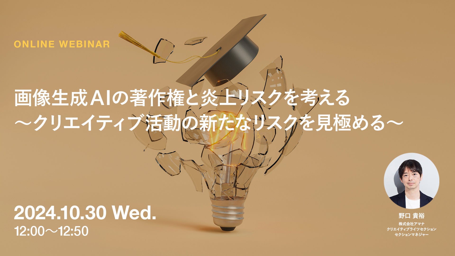 2024年10月30日(水)ウェビナー開催のお知らせ「画像生成AIの著作権と炎上リスクを考える~クリエイティブ活動の新たなリスクを見極める~」