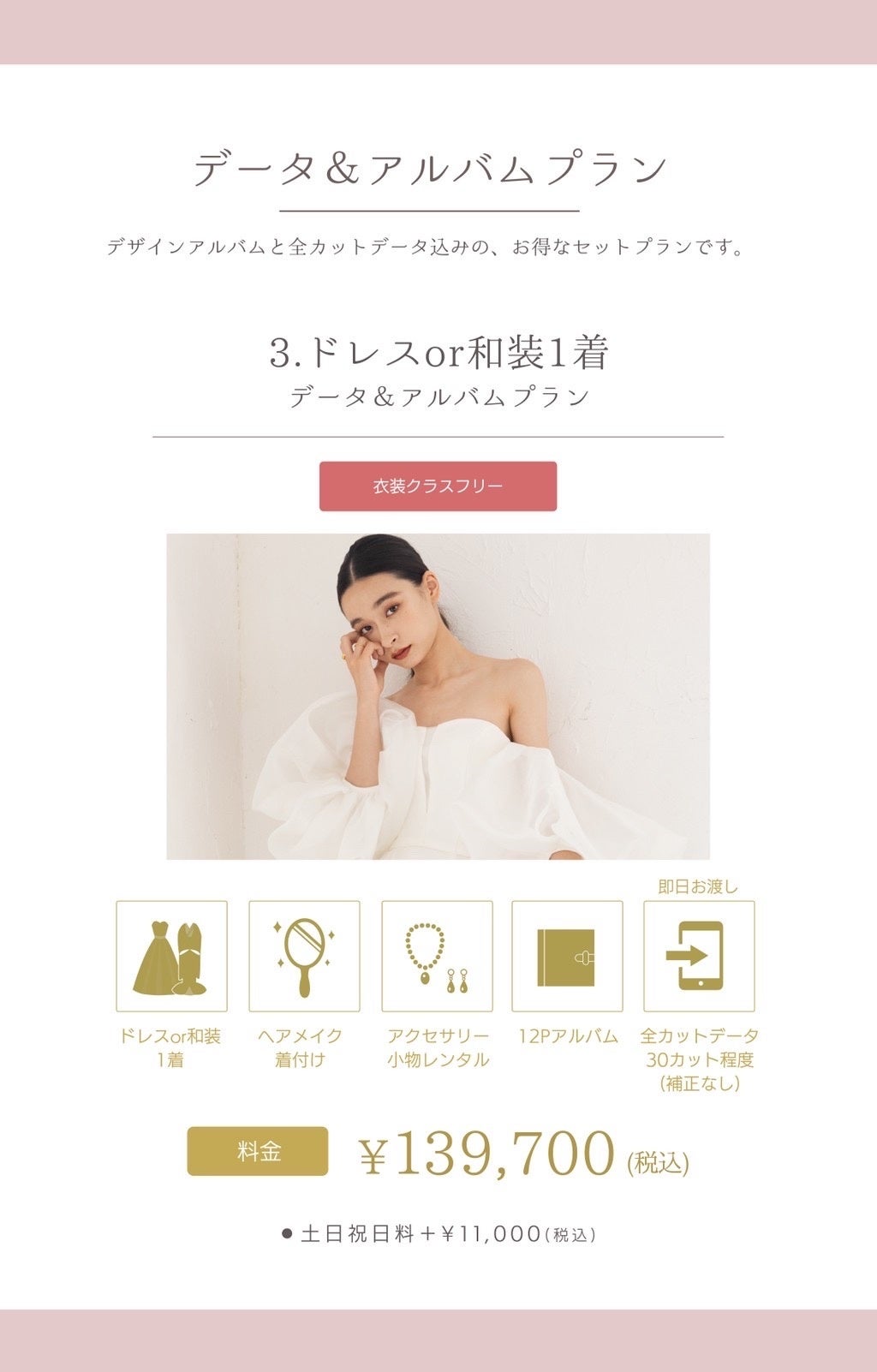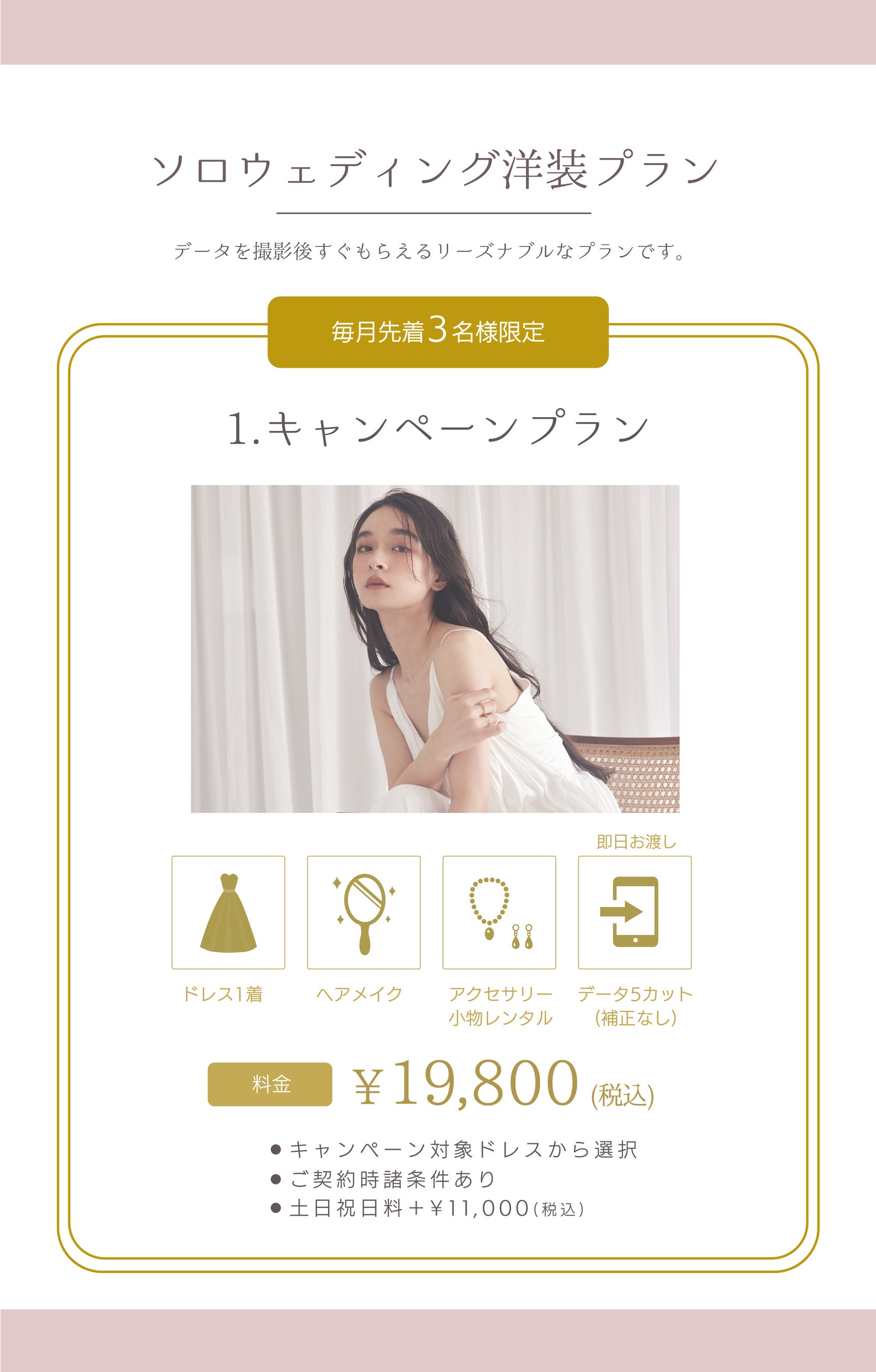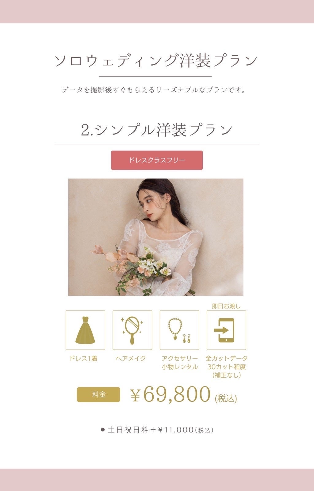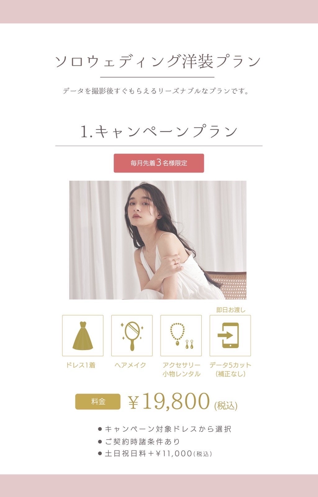 *キャンペーン対象ドレスから選択 *ご契約時諸条件あり *土日祝日料金別途¥11,000