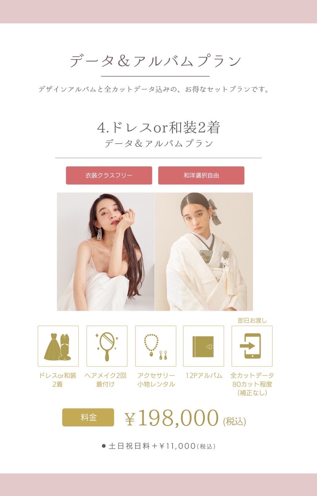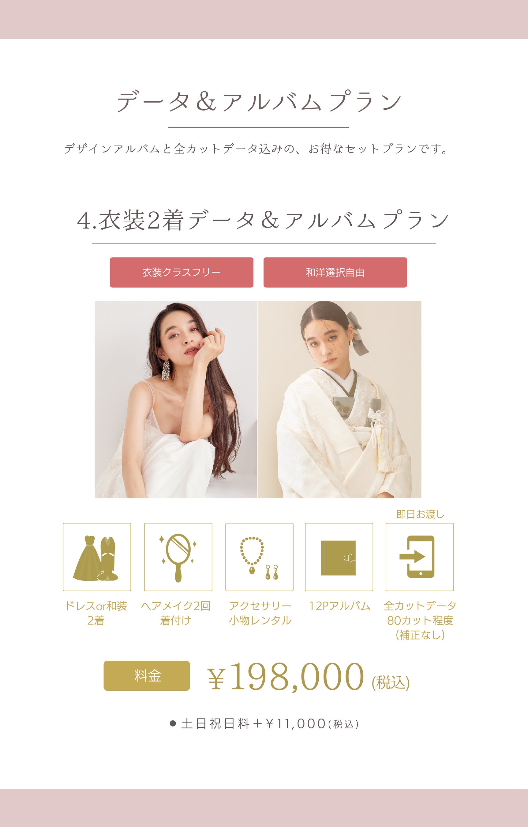 ・ドレスor和装 2着(衣装クラスフリー、組み合わせ