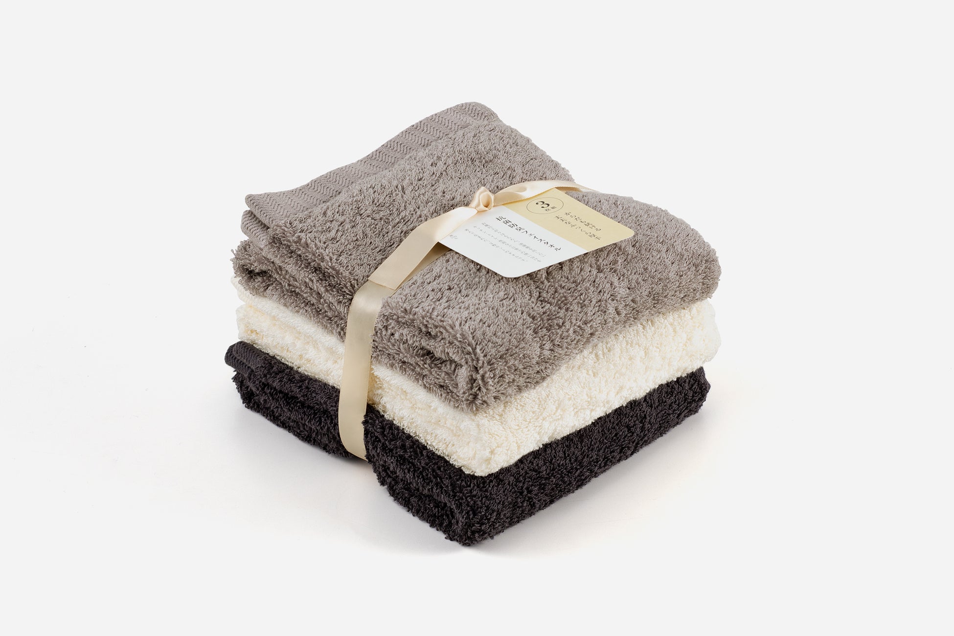キッチン・トイレ・洗面所など、様々なシーンに馴染む落ち着いたグレーの3枚セット。タオルの縁にシンプルなカラーラインを入れているので、タオルをシーン別に使い分ける際にわかりやすい目印となり、細部にまでこだわりが詰まったアイテムとなっております。